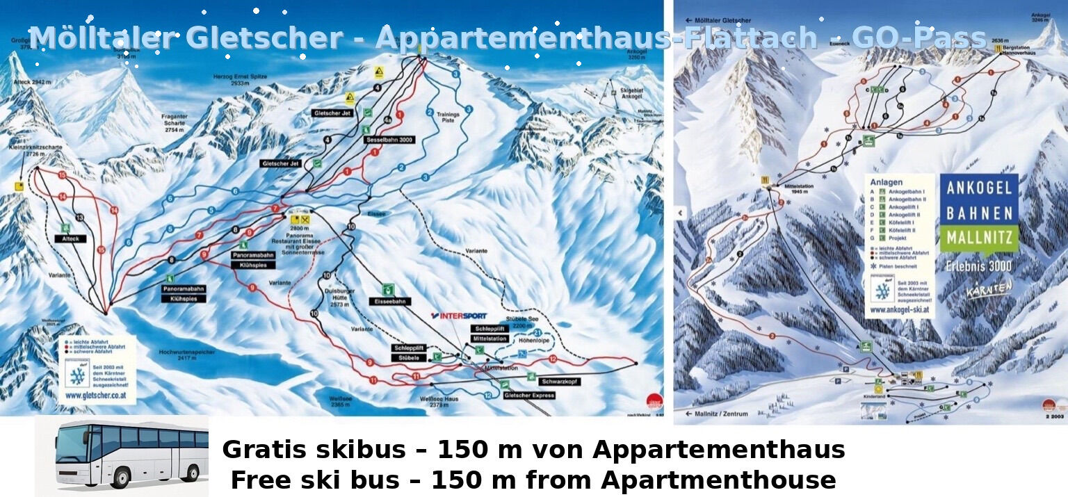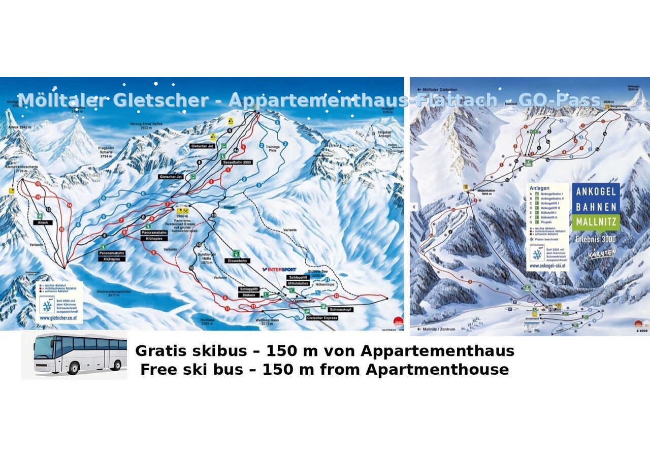 The bus stop for the free ski bus to the Mölltaler Gletscher is about 200 meters away. (This bus also goes to the Mallnitz / Ankogel ski area.)