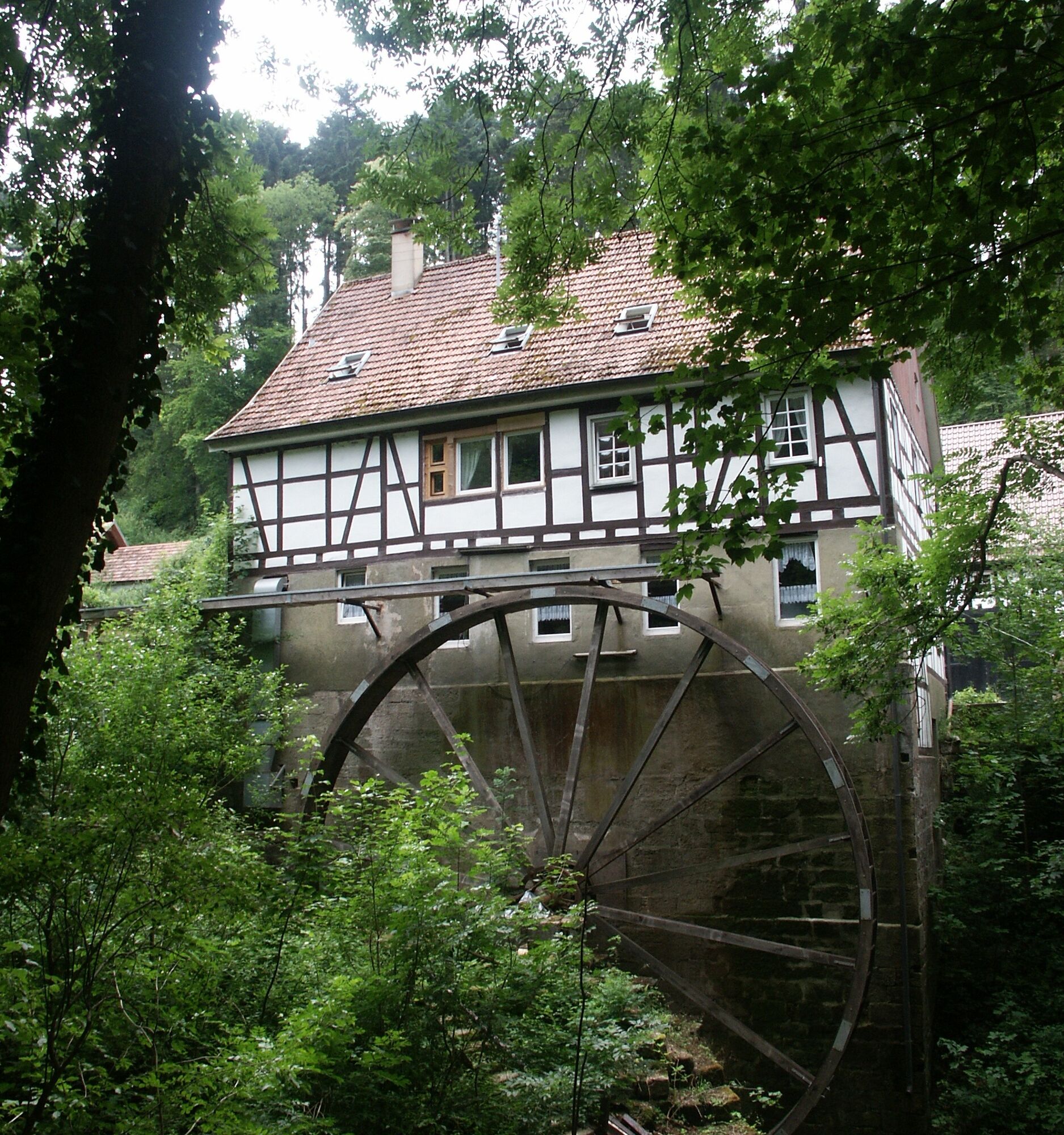 • Cross the Nagold to the right and climb steeply past the hospital (km 11.0). Continue uphill to the town edge at the cemetery (km 13.2). At Welschen Häusle turn left and again left (km 13.4) down a steep gravel path to Gasthaus Fuchsklinge (km 15.1).
