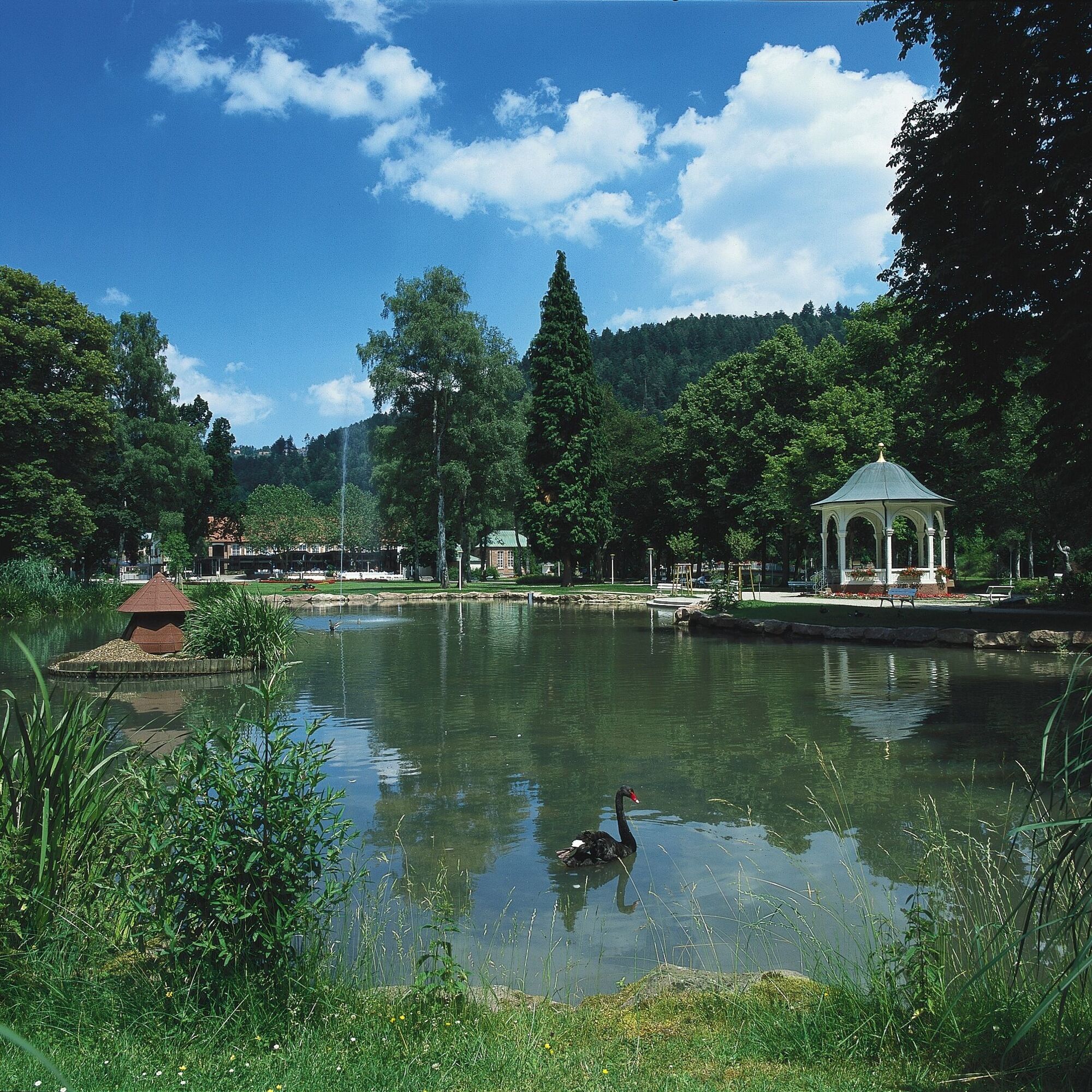 • Descend steeply on the trail towards the thermal baths down to Bad Liebenzell. Along the promenade and at km 24.0 turn left onto "Wilhelmstraße" to Bad Liebenzell Mineralbrunnen AG. At km 25.4 follow the gravel road along Kollbach uphill.