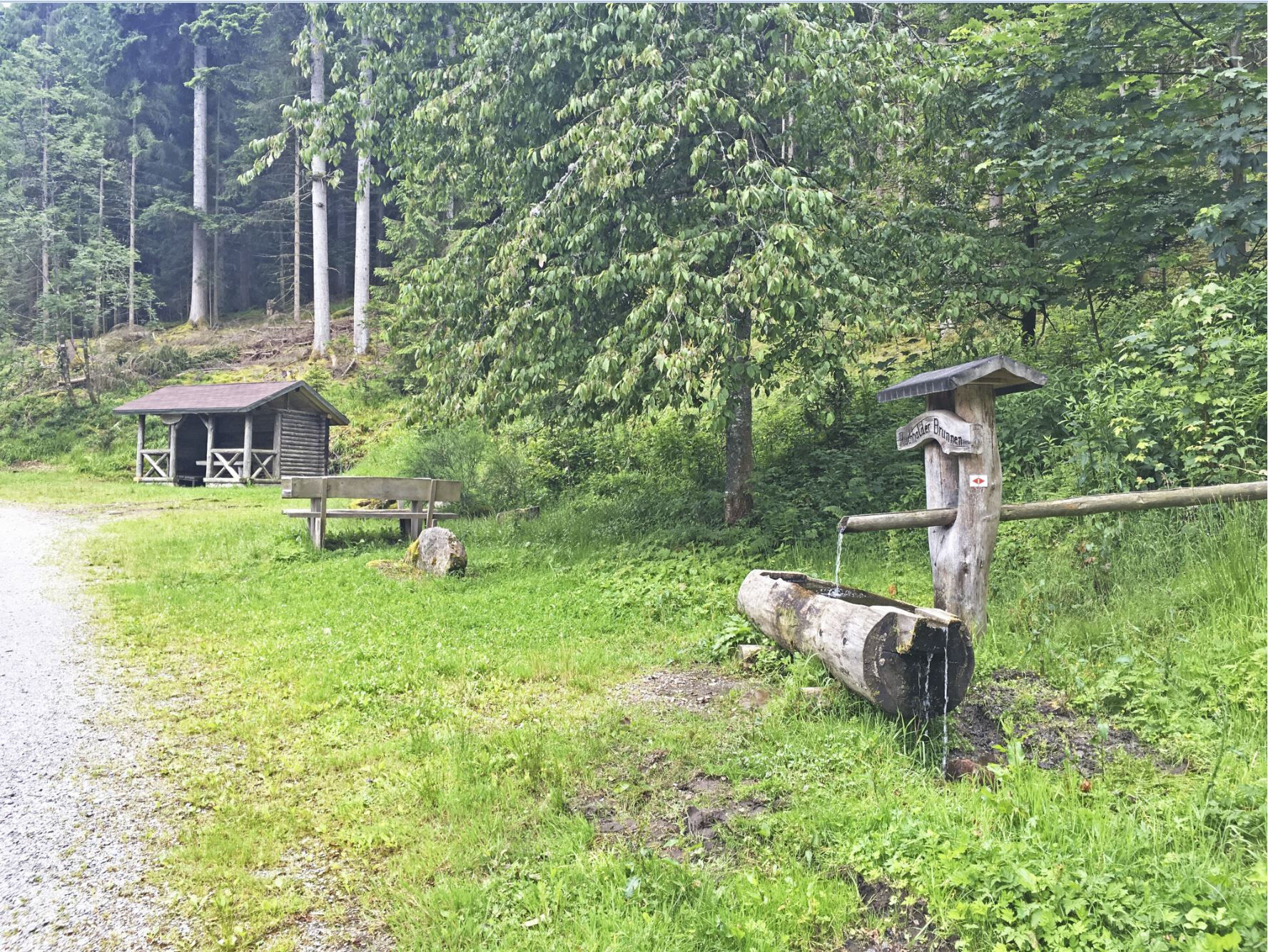 Es geht entlang des Naturschutzgebietes (in diesem Gebiet liegen der Wild- und Hornsee). An der Weißensteinhütte dem Weg links folgen. Es geht geradeaus weiter bis km 41,1. Hier links halten. Nach 800m rechts halten. An der Kreuzung (km 43,6) leicht rechts halten. Wir folgen dem Wegverlauf für 1,5 km und halten uns dann rechts. Danach gleich wieder rechts halten. An der Brunnen-Hütte geht es rechts weg (km 47) einen groben Waldweg bergab. Hier überqueren wir auch die Downhillstrecke (Gefahrenstelle - Downhiller haben hier Vorfahrt!).