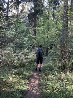 Verlauf: Naturfreundehaus - Hagenbachursprung - Käswässerele - Albvereinsbrunnen - Albvereinshütte Aixheim - Hessenhardthütte - Kelt. Viereckschanze - Spatenbaum - Solwegparkplatz - Wiesenweg - Große Tanne - Altes Schloss - Naturfreundehaus