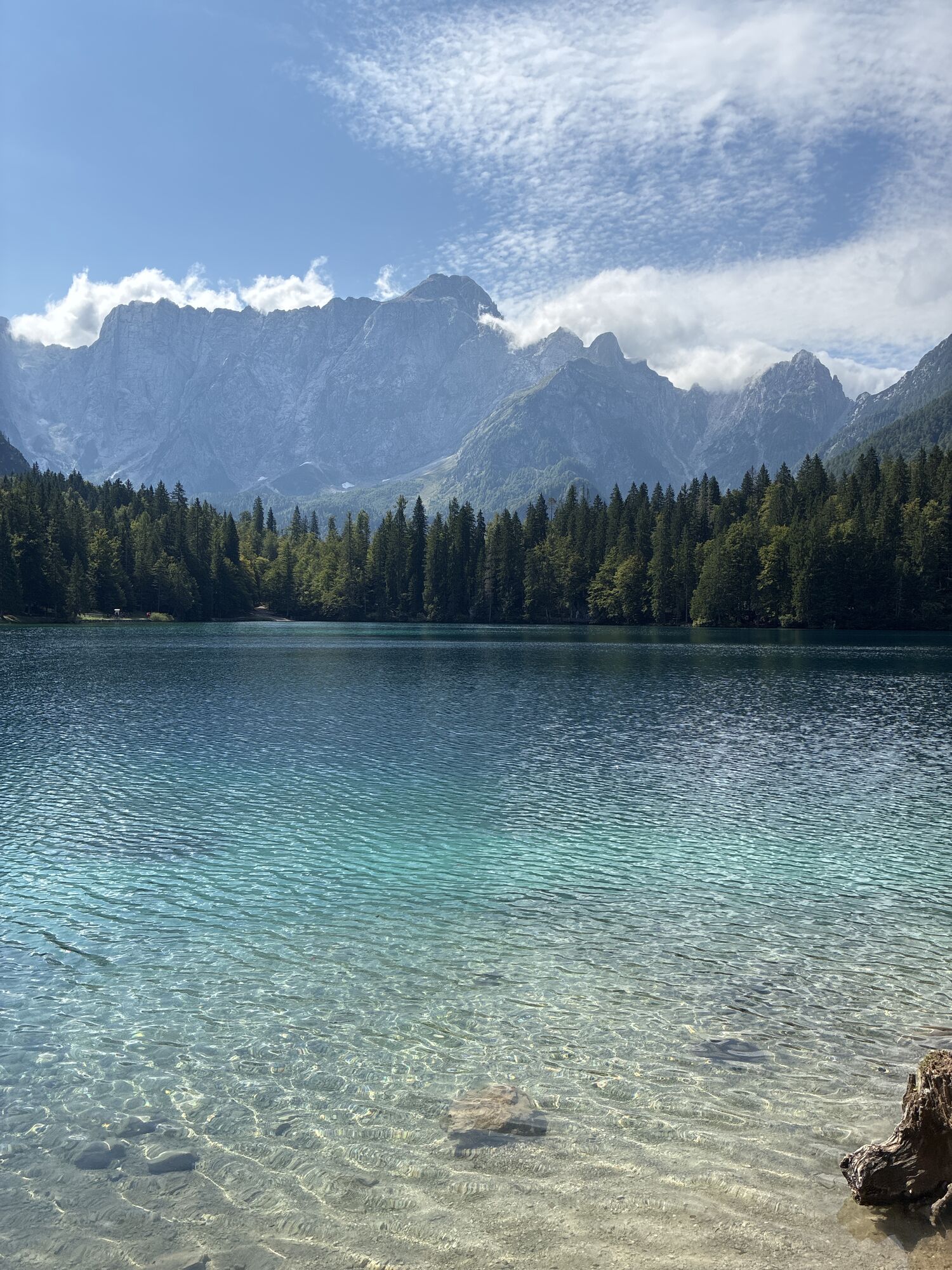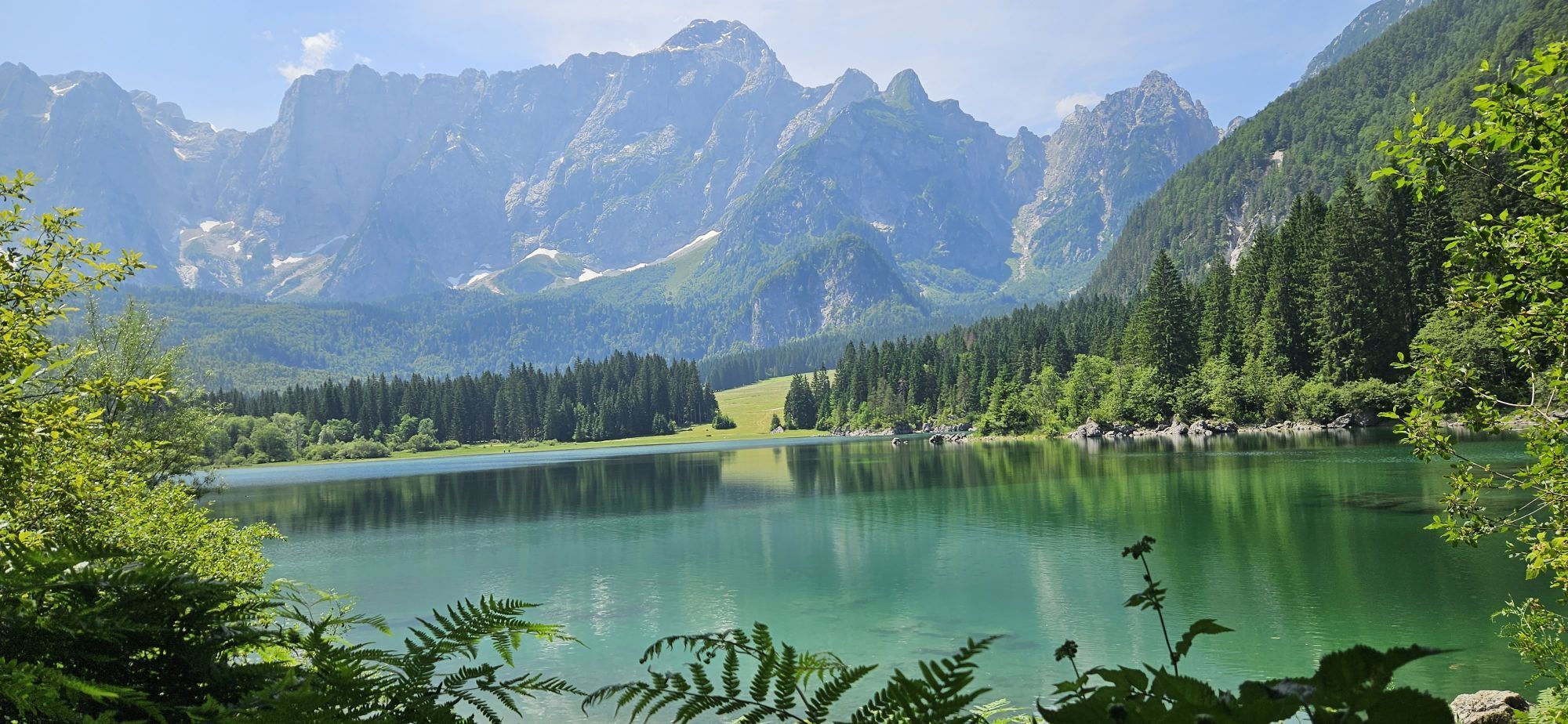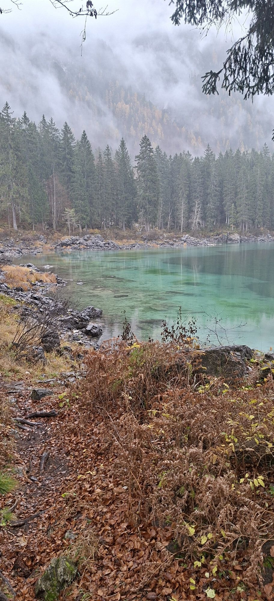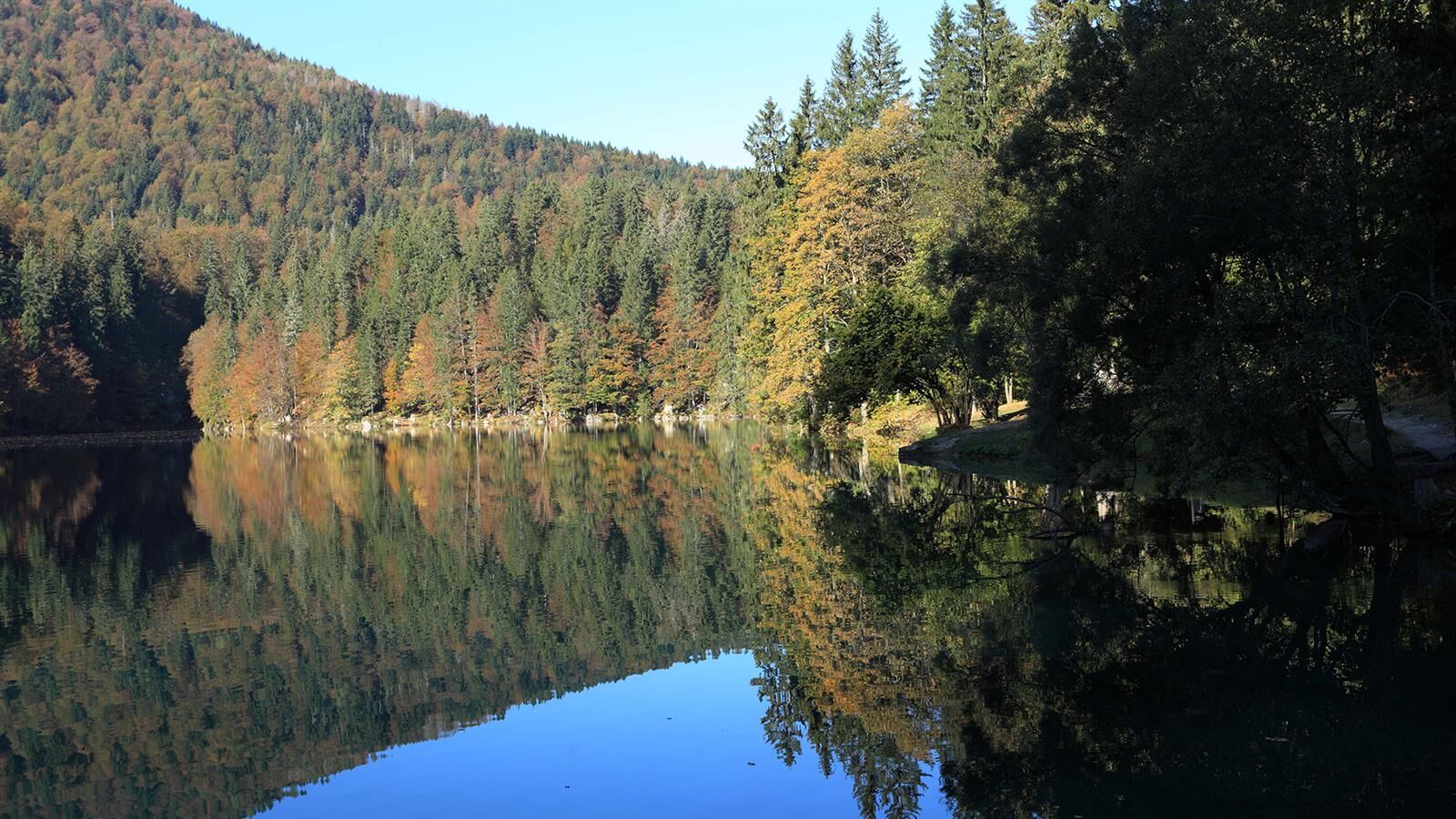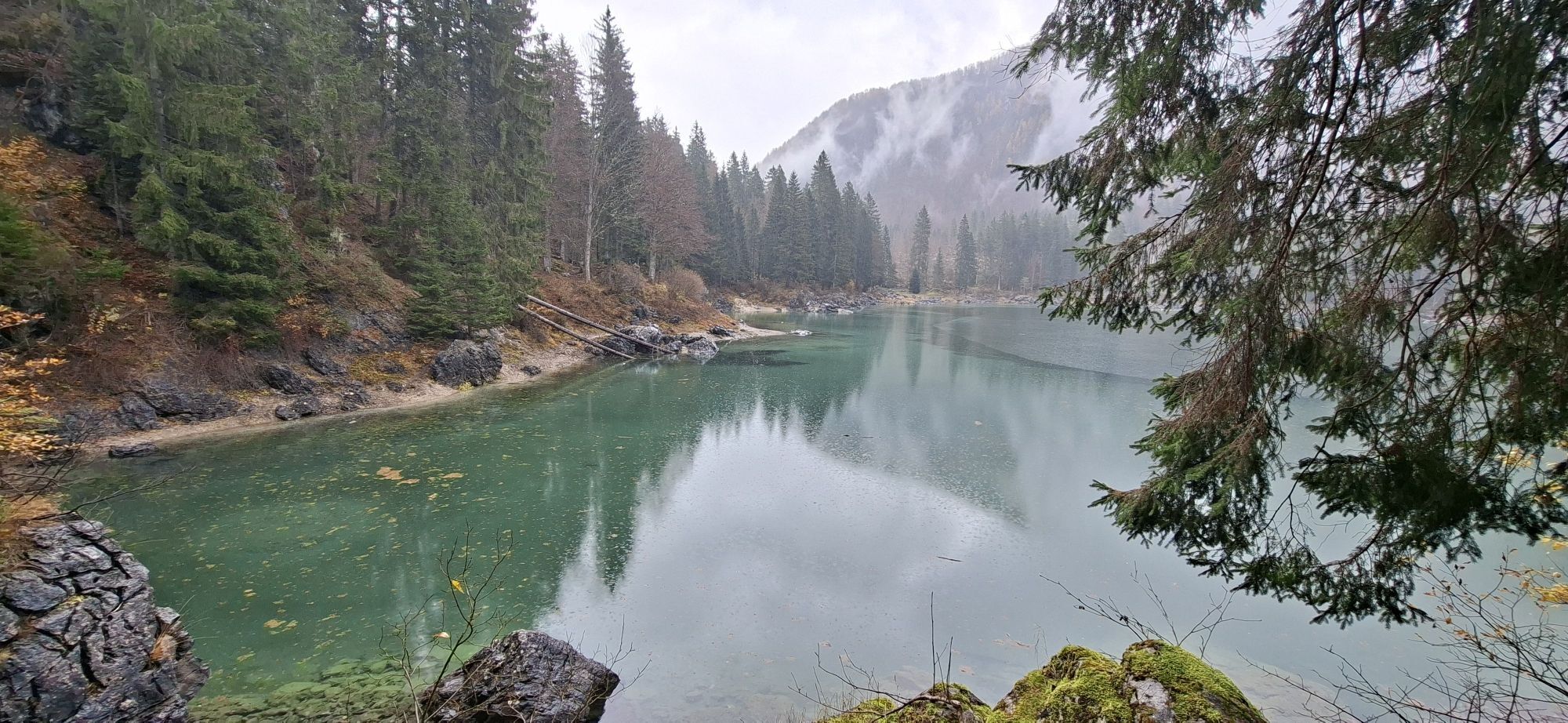 Egy rövid erdei szakasz után, amelyet néhány gyalogos híd könnyít meg, a hurok egy olyan lejtÅszakaszon halad át, amelyet a Rio del Lago patakba ömlÅ víz jellemez. Jobbra haladva feltűnnek a Mangart és a Ponze falak. A partot követve a bükk- és lucfenyÅerdÅn keresztül elhaladunk azon a területen, ahol a tó a legszélesebb. Az ösvény emelkedik, hogy átkeljen egy morénakordonon, amelyet néhány hatalmas sziklatömb jellemez. A gyenge domborzatról ismét leereszkedünk, és az erdÅben folytatjuk utunkat, hogy elérjük a Lago Superiore-t. A nyugati partot a tó folyását követÅ ösvényen kerüljük meg, amíg elérjük a kiterjedt déli síkságot. Az ösvény a Lago Superiore partja mentén folytatódik. Eléri az Edelweiss Hut felé vezetÅ széles sétányt, ahonnan kiindulópontja az odaútnak (tó ösvény), vagy közvetlenül az aszfaltúton.