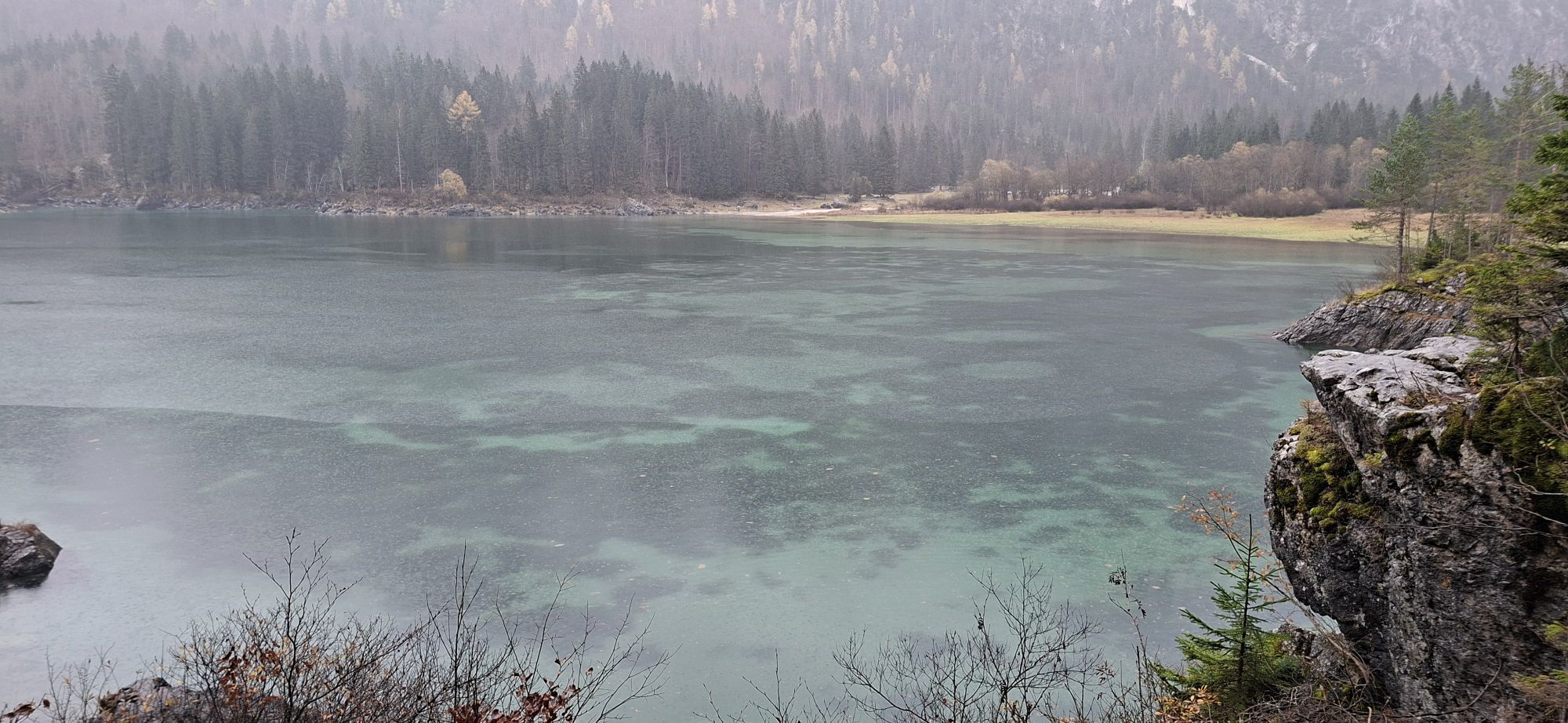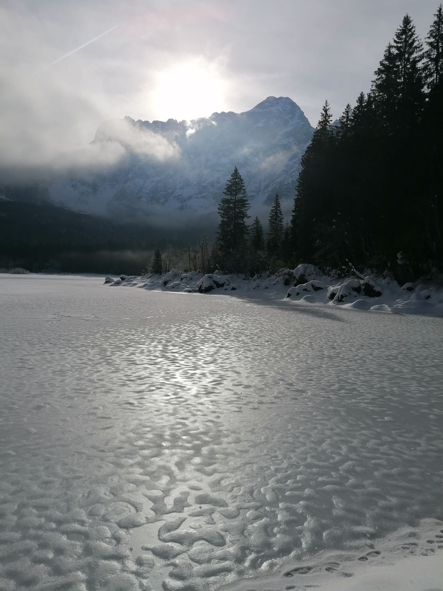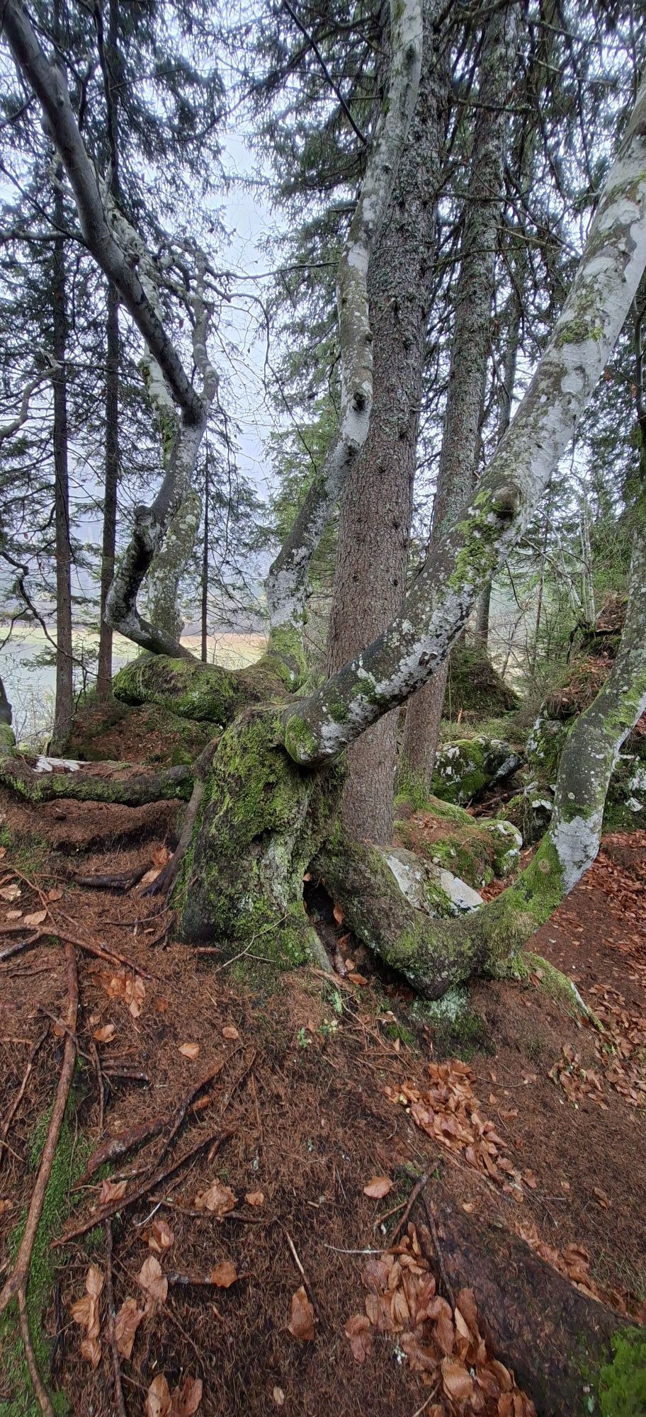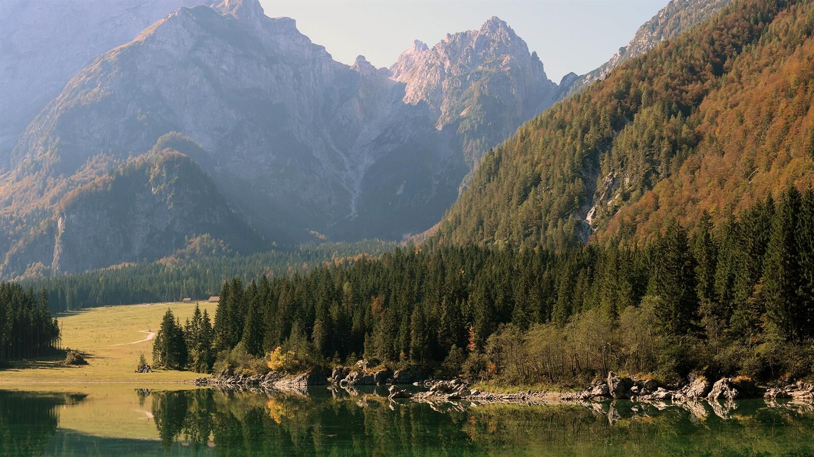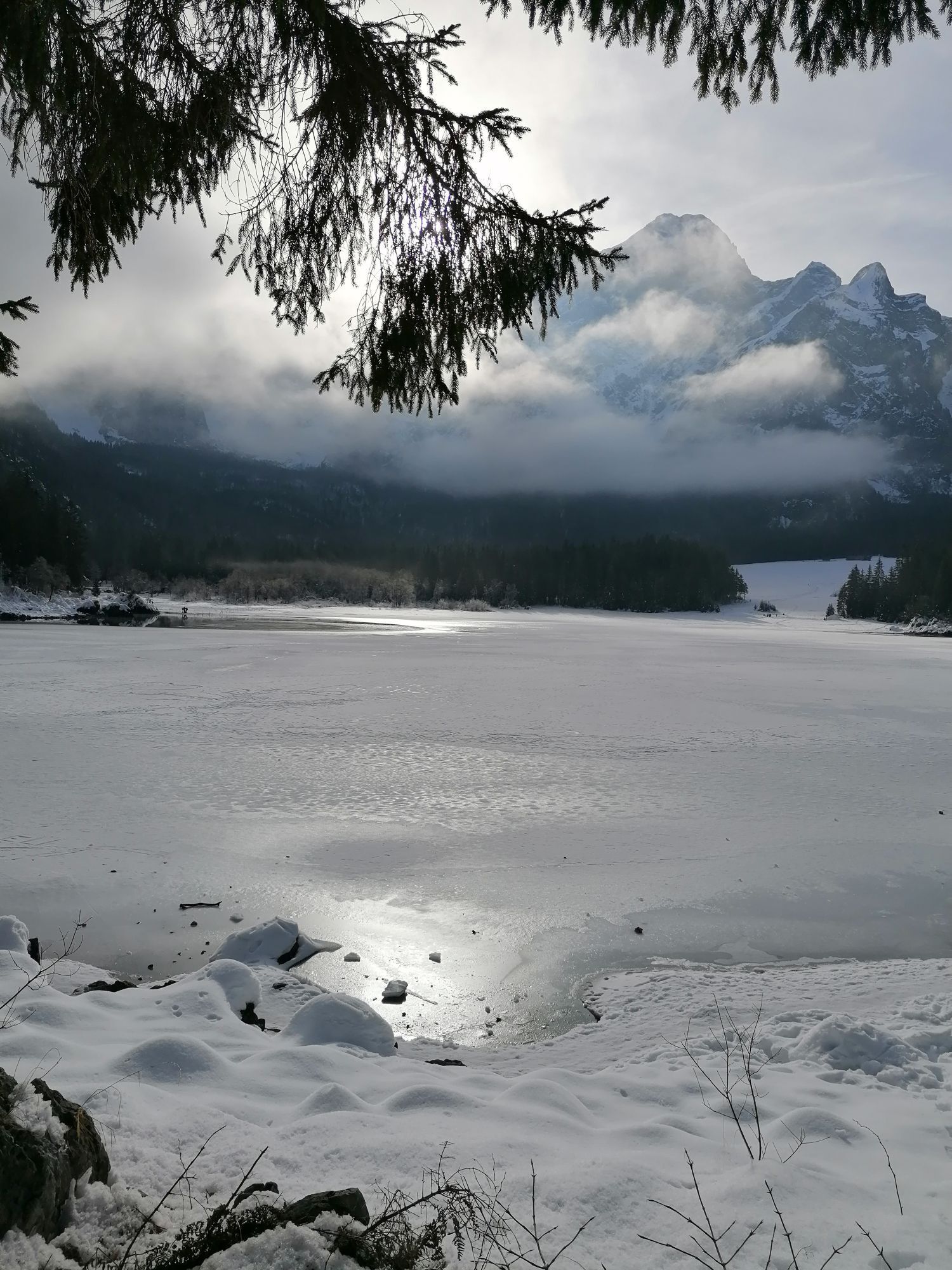 Egy rövid erdei szakasz után, amelyet néhány gyalogos híd könnyít meg, a hurok egy olyan lejtÅszakaszon halad át, amelyet a Rio del Lago patakba ömlÅ víz jellemez. Jobbra haladva feltűnnek a Mangart és a Ponze falak. A partot követve a bükk- és lucfenyÅerdÅn keresztül elhaladunk azon a területen, ahol a tó a legszélesebb. Az ösvény emelkedik, hogy átkeljen egy morénakordonon, amelyet néhány hatalmas sziklatömb jellemez. A gyenge domborzatról ismét leereszkedünk, és az erdÅben folytatjuk utunkat, hogy elérjük a Lago Superiore-t. A nyugati partot a tó folyását követÅ ösvényen kerüljük meg, amíg elérjük a kiterjedt déli síkságot. Az ösvény a Lago Superiore partja mentén folytatódik. Eléri az Edelweiss Hut felé vezetÅ széles sétányt, ahonnan kiindulópontja az odaútnak (tó ösvény), vagy közvetlenül az aszfaltúton.