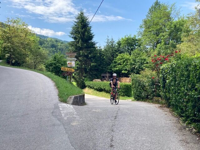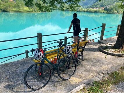 The cycling route follows narrow roads leading through villages on the left bank of the Soča River, where you should be alert for pedestrians and motor vehicles.