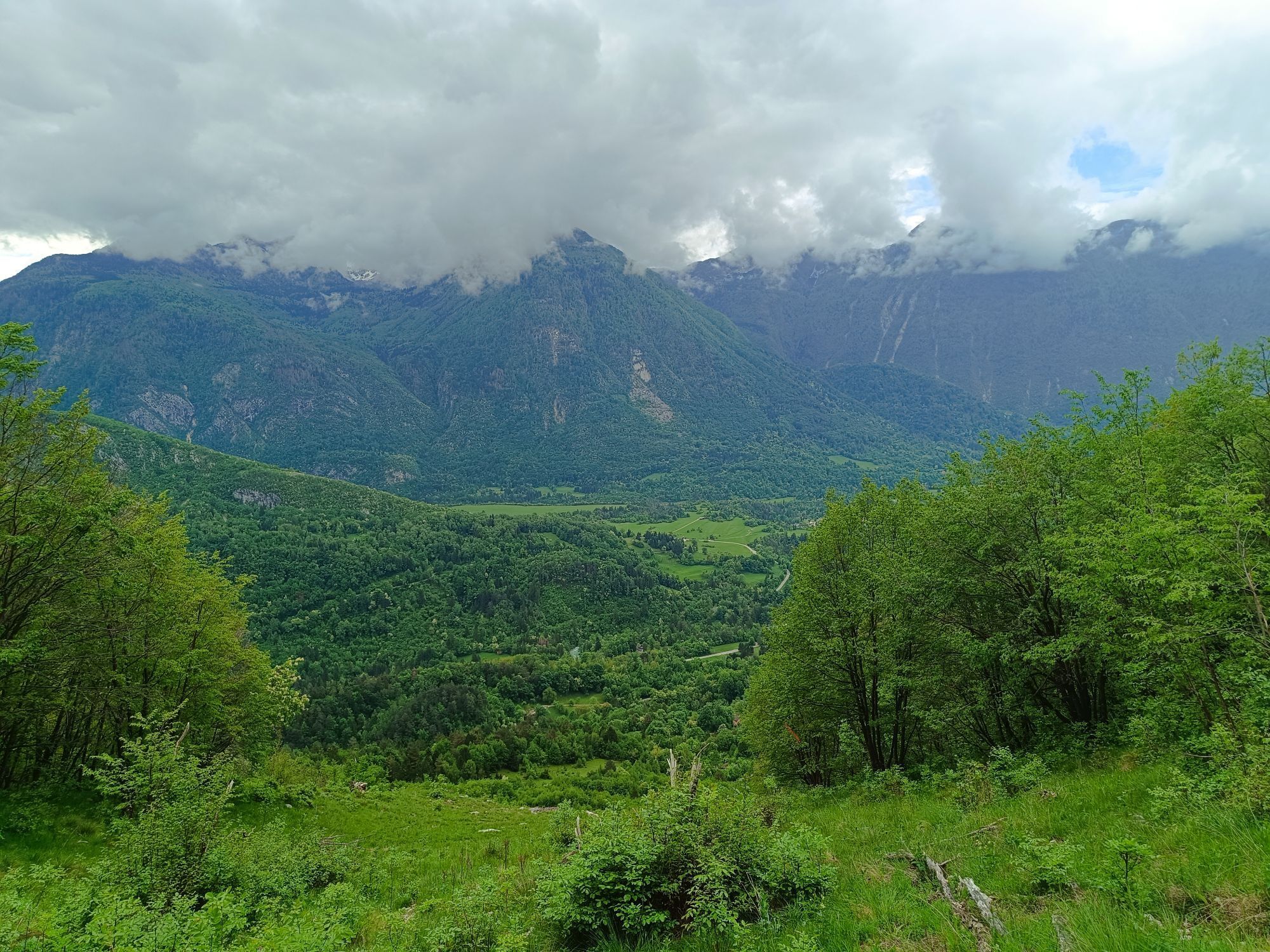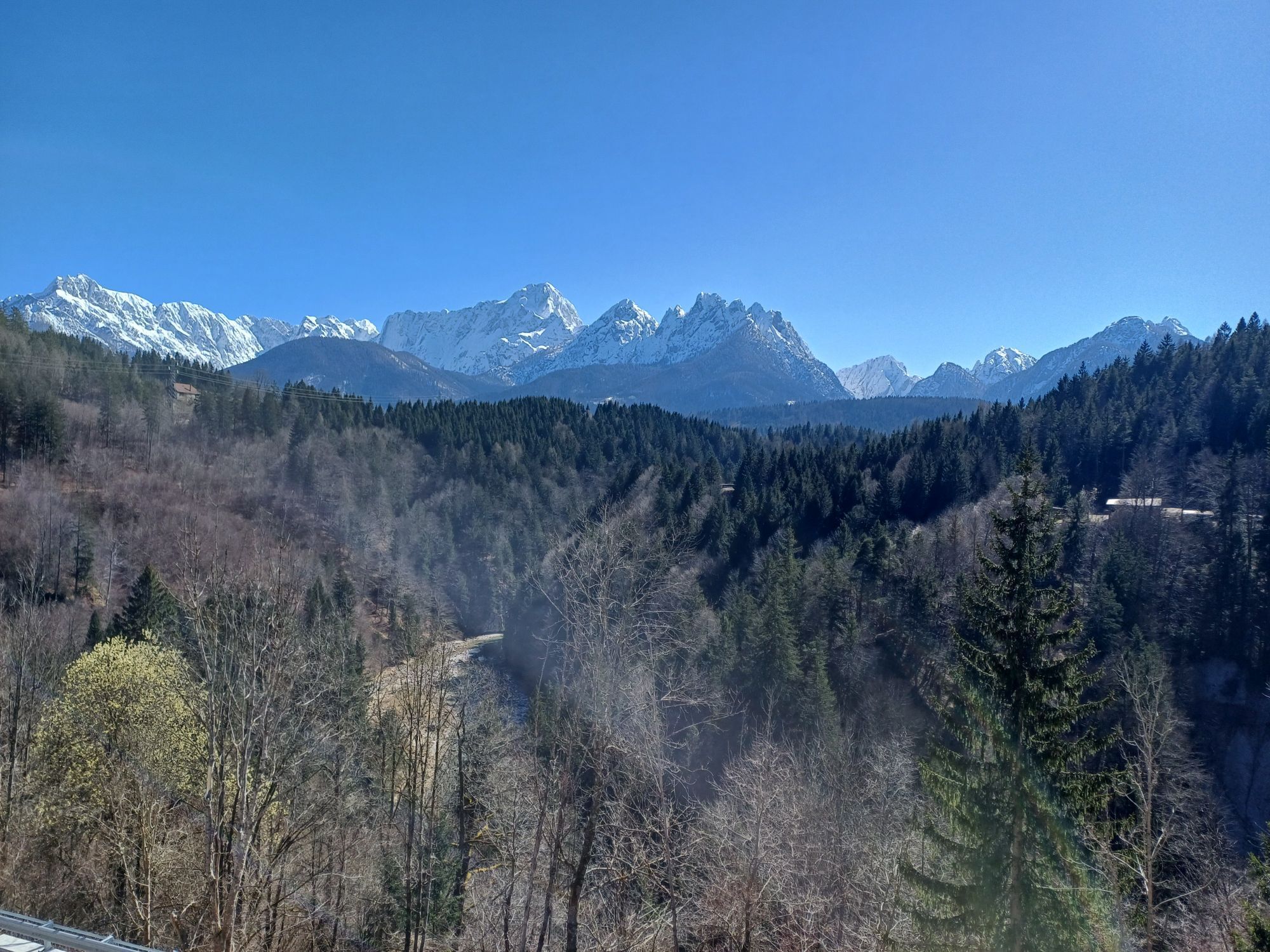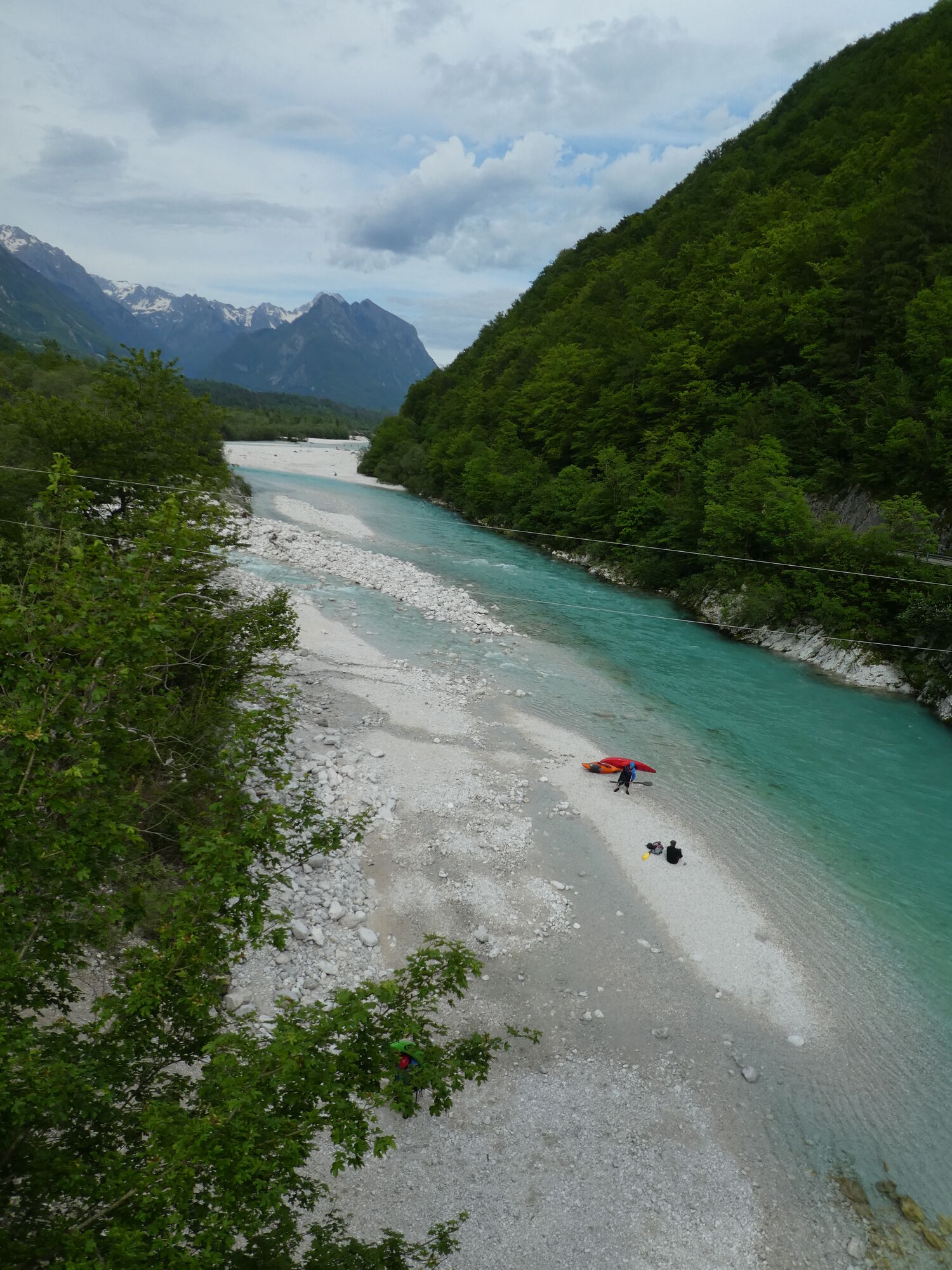 Von Feistritz an der Donau entlang der Drau bis Villach (gut beschildert), dann ebenso am Radweg Richtung Grenze nach Arnoldstein. Wir haben uns an der Grenze den Abstecher rechts weg vom Radweg (beschildert) auf eine Anhöhe erst geschenkt und sind ein kurzes Stück auf der Hauptstraße gefahren ca. 0,5km. Danach sind wir auf den Via Alpe Adria abgezweigt und diesen bis Tarvis gefahren. In Tarvis geht es dann bis zum Pass Predil auf der Hauptstraße (am besten zeitig in der Früh oder Mittag fahren). Auf der Passhöhe ist die Grenze nach Slowenien. Danach geht es lange bergab bis nach Bovec. Ca. 10 km danach kommt der kleine Ort Boka vor Zaga. Wir haben dort übernachtet.