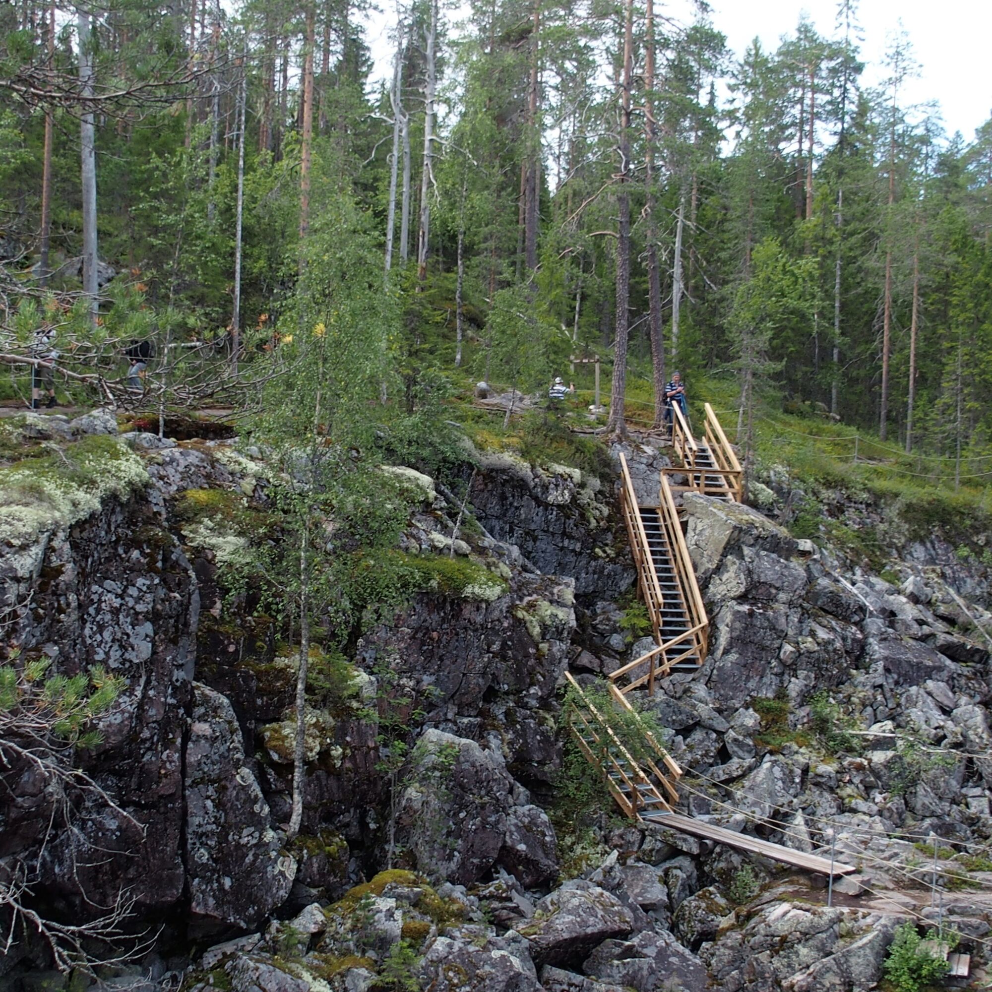 The park can also be accessed from the Kuhmo - Valtimo highway (no 5284) parking areas at Käämäserkä and Urpovaara, from where marked trails lead to Hiidenportti.