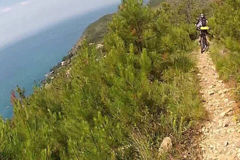 The route starts from Levanto and continues towards Bonassola, on asphalt as far as Pian Pontasco. Pick up the dirt road to the right, across the old barrier always open: you are now in the Prati Pian Pontasco area. Go up the dirt road, pass the crossroads with a wide trail that heads downhill (do not take it) and keep climbing until you reach a trail on the left. Turn into it and continue to Pian Del Lago where you will find a junction: take the trail that goes downhill to the left - it is important not to get this wrong. Ride downhill until you reach a climb to the left known as Bagun, continue along the slightly uphill slope in the middle of the pine forest. The trail becomes a fast descent and takes you to Pineta Pian Pontasco: continue to the left, climbing the gentle slope peppered with rocky step-ups, within the woods. At the end of the climb, the trail gently heads down approaching the junction with ex 28 trail. Turn right and continue until you find a bench: it marks the start of the descent. The initial section is very fast, with a series of jumps and berms and it takes you down to Hotel La Rossola. Continue to the middle section of the trail, a fast, jump-strewn descent again. Do not turn and keep going straight ahead until you reach a gully with a boardwalk. At the exit of it, there is a junction on the right: continue straight, leave the woods behind approaching the first passage on rocks, particularly slippery if wet. Reach the abandoned quarry and continue until you spot an inhabited house to the left: slow down and pick up the Tornantini trail that takes you back to the start point.