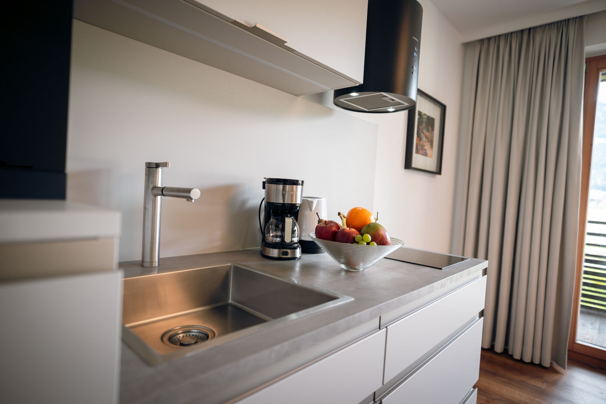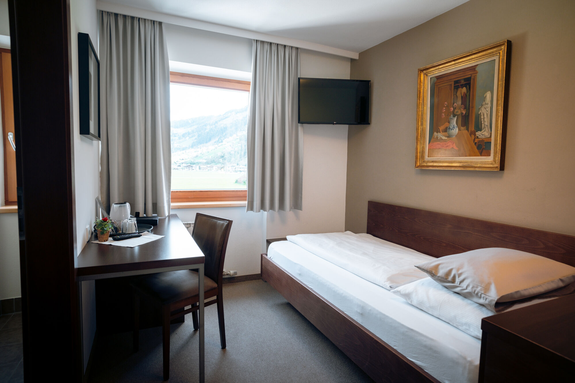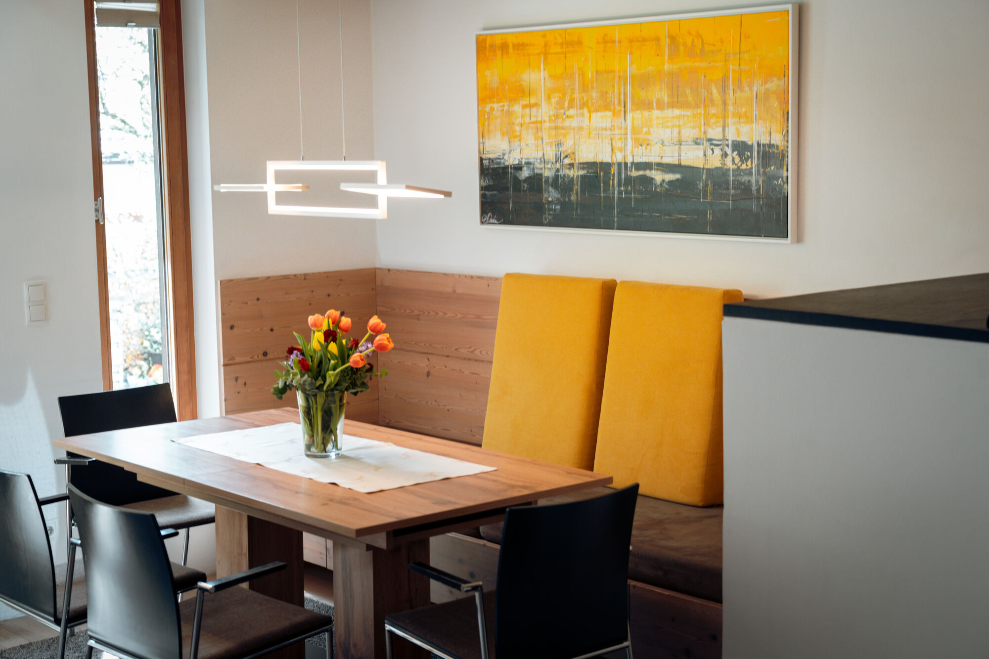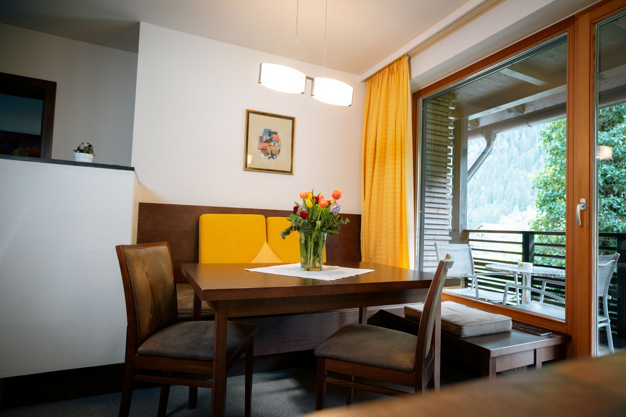 Design-orientated and transparent decor, with a lot of glass and elegance bring the wonderful and imposing surrounding mountains to you in our light and sunny establishment.