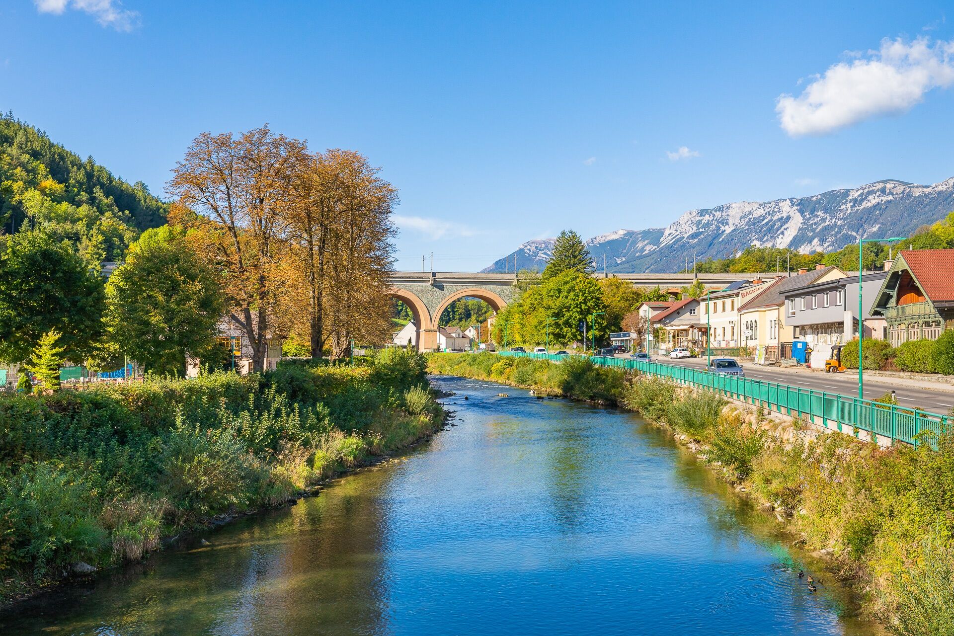 An der einzigen Ampelkreuzung in Payerbach biegen Sie rechts ab und folgen Sie dem Straßenverlauf bis zum Bahnhof Payerbach-Reichenau.