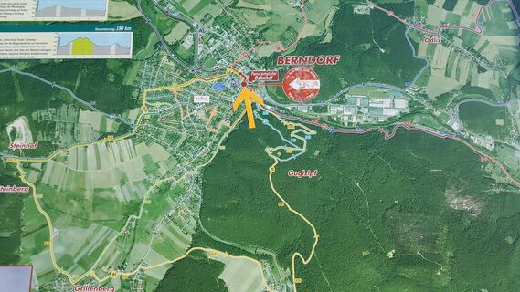 Mit der S-Bahn zum Bahnhof Berndorf oder zum Öffentlicher Parkplatz Karl Johann Mayrstraße.