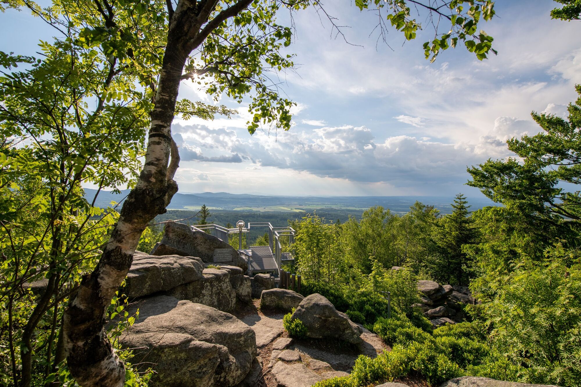 Vom Gemeindeamt im Wanderdorf Harbach startend, wanderst du entlang der Ortschaft in Richtung Mandelstein. Nach einem kurzen Anstieg verlässt du die Ortschaft. Ein altes Wegkreuz steht direkt bei der Abzweigung bevor du den Harbachbach überquerst. Du folgst dem asphaltierten Weg bis er in eine Forststraße mündet. Diesem folgst du ca. 1 km bis zur Mandelsteinstraße. Nach 350 m darfst du die asphaltierte Straße verlassen und links auf dem Waldweg weiter den Berg hinauf wandern. Nach einem Stück siehst du zu deiner Linken einen Wegweiser zur „Fleischbank“ – ein lohnender Abstecher. Kurz vor dem Gipfel zweigt auf der rechten Seite der Weg „Rund um den Mandelstein“ ab. Diesen Rundweg solltest du noch vor der „Gipfelbesteigung“ machen. Er endet ein Stück oberhalb des Einstiegs und von hier sind es nur noch einige Schritte zum Gipfelkreuz und der Aussichtsplattform. Bei gutem Wetter hast du eine herrliche Sicht bis weit ins Böhmerland hinein. Beim Abstieg geht es gemütlich durch den Wald. Verpasse nicht die Abzweigung nach etwa 300 Metern und genieße den herrlichen Ausblick auf das Schloss Weitra. Direkt auf der Kuppe kommst du wieder zur asphaltierten Straße und biegst dann nach 300 m links in den Waldweg ein. Folge der Markierung, vorbei am Aussichtspunkt „Hoch über Wultschau“, in den Ort Wultschau. Dort zweigst du rechts ab und gehst durch die Ortschaft um diese am Ortsende wieder rechts zu verlassen.