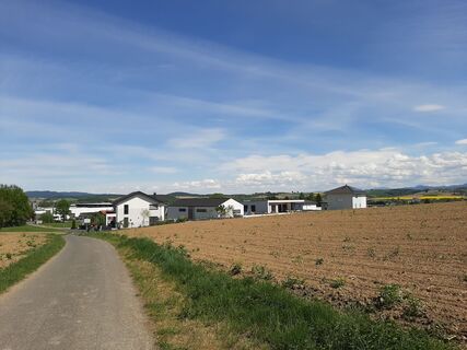 Von der Phyringer Felder Panoramatafel startet der Rundweg in Richtung Holzing. Über die asphaltierte Straße führt der leicht steigende Weg durch das Dorf hinauf. Rechterhand befindet sich ein Bauernhof...