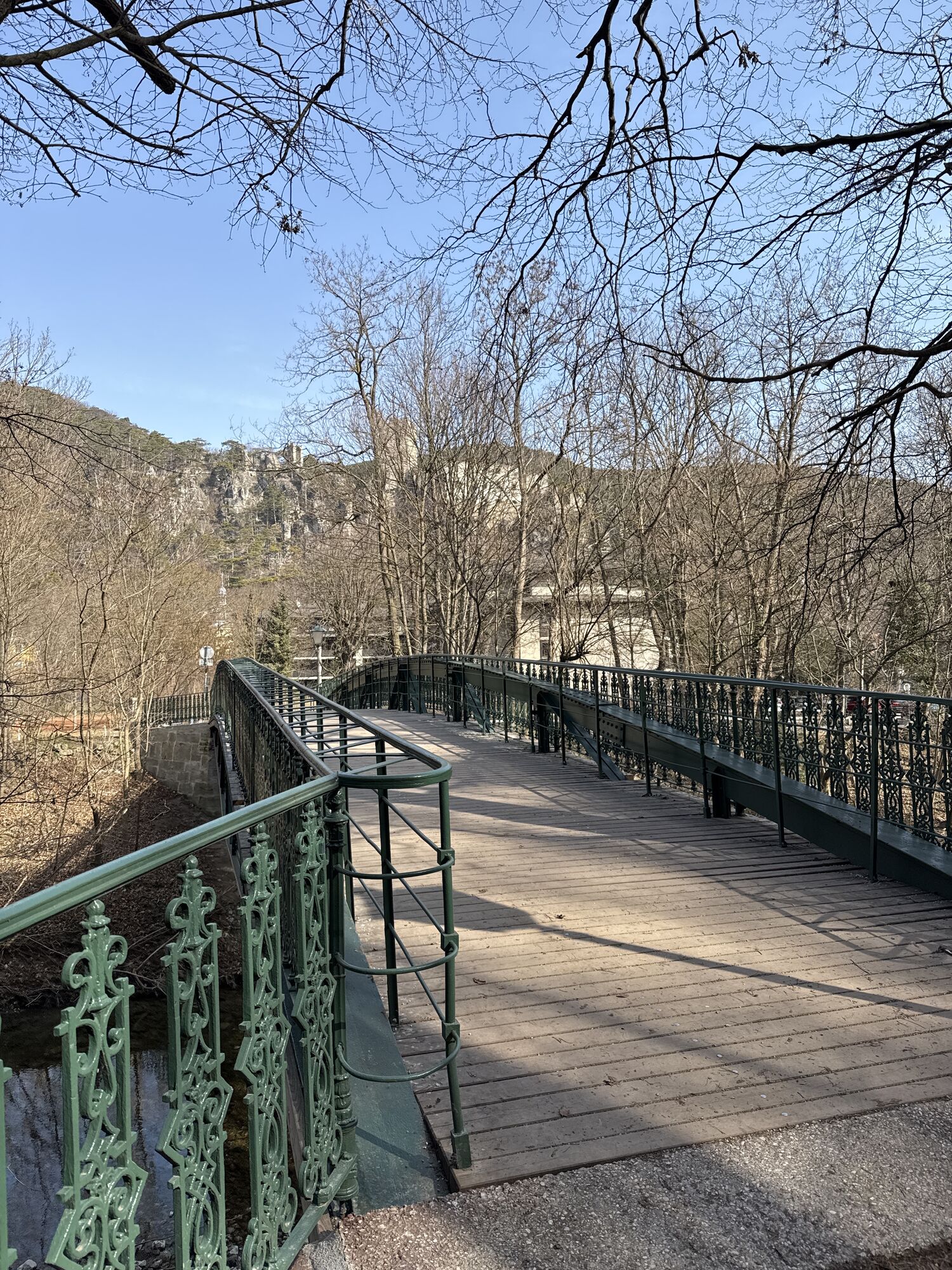 Neben dem Helenenkirchlein geht es hoch Richtung Ruine Rauhenstein. Knapp oberhalb erreichen wir den Rainerweg, den wir rechts abbiegend bis zur Faberhöhe verfolgen. Von dort geht es rechts abwärts zum Franz Josephmuseum. Zunächst waagrecht führt uns der Weg weiter Richtung Kurpark. Bevor wir ihn erreichen folgen wir der Beethovenmarkierung rechts abwärts zum Felsenweg und erreichen über ihn den unteren Teil des Kurparks und den Beethoven Spazierweg.