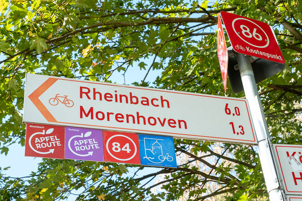North Rhine-Westphalia’s largest fruit and vegetable growing region offers a unique cultural and natural landscape, especially in spring during the fruit blossom and in autumn at harvest time. Unfortunately, cycling uphill can’t be entirely avoided, but you will almost always be rewarded with great panoramic views. Whether to the Eifel, the Ahr valley, or even to Cologne Cathedral – they are all spectacular. The themed cycling route leads along low-traffic and well-paved paths. On most of the route, you can relax and enjoy nature on wide agricultural roads. The main route is about 90% paved and offers comfort in all weather. Numerous farm shops, farm cafés, restaurants, and accommodations along the way give you the chance to stop, relax, and buy regional products. At the 12 newly designed rest stops along the main route, you can take breaks and unwind. Attractive experience stations offer interesting information about regional agriculture and cultural landscape.