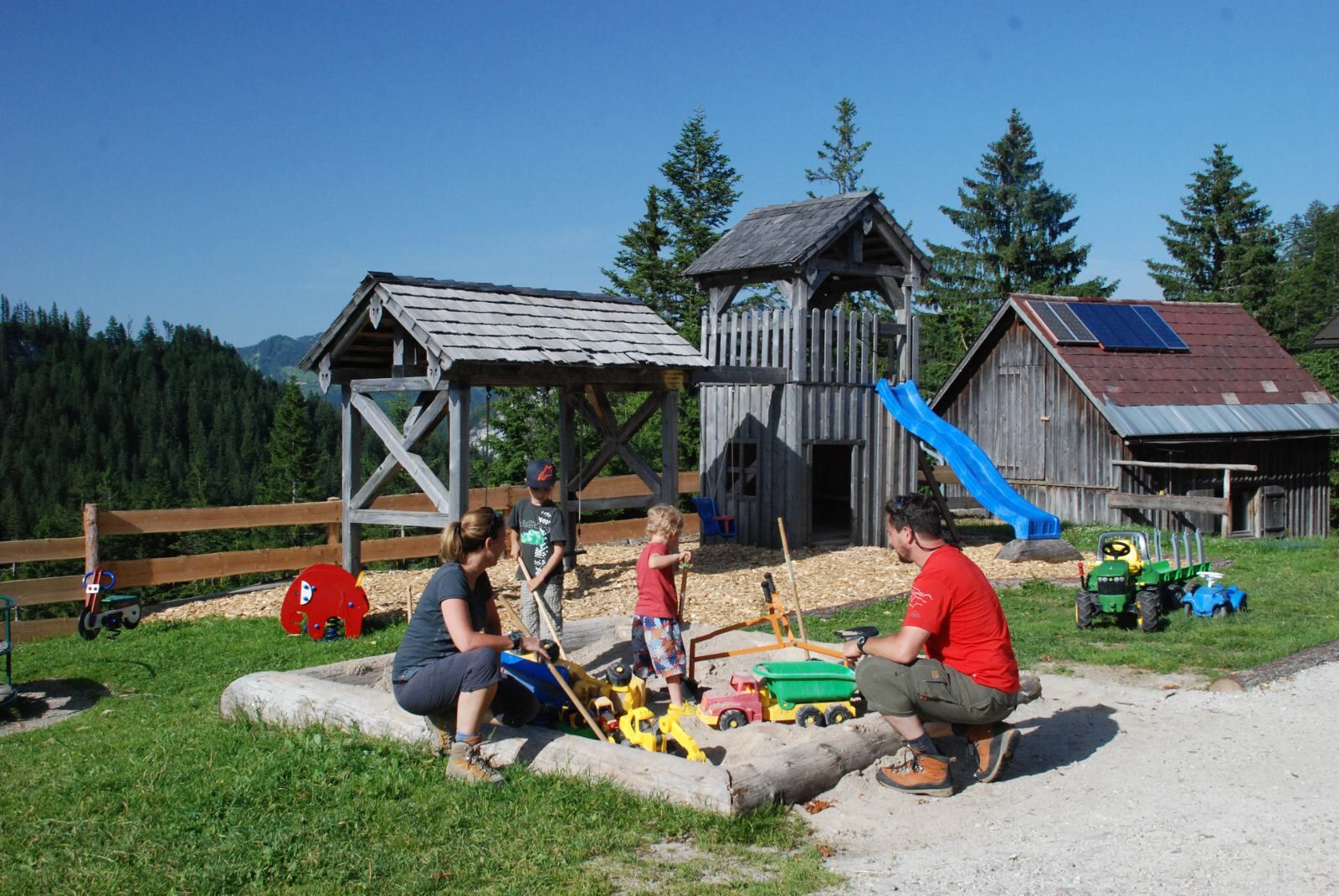 Now it goes along a narrow path through the quarry, which triggers enthusiasm especially among children, because you can climb on the small and large boulders. After we have crossed the quarry, most of the hike is done, from here it takes about 15 minutes until we have reached the “Hütteneckalm”. In the Hütteneck hut at 1,240 m above sea level, we can expect a breathtaking view of the world heritage with the Dachstein and its glacier, as well as culinary delight from the traditional wood-burning oven. Also there is a playground and a petting zoo for children.