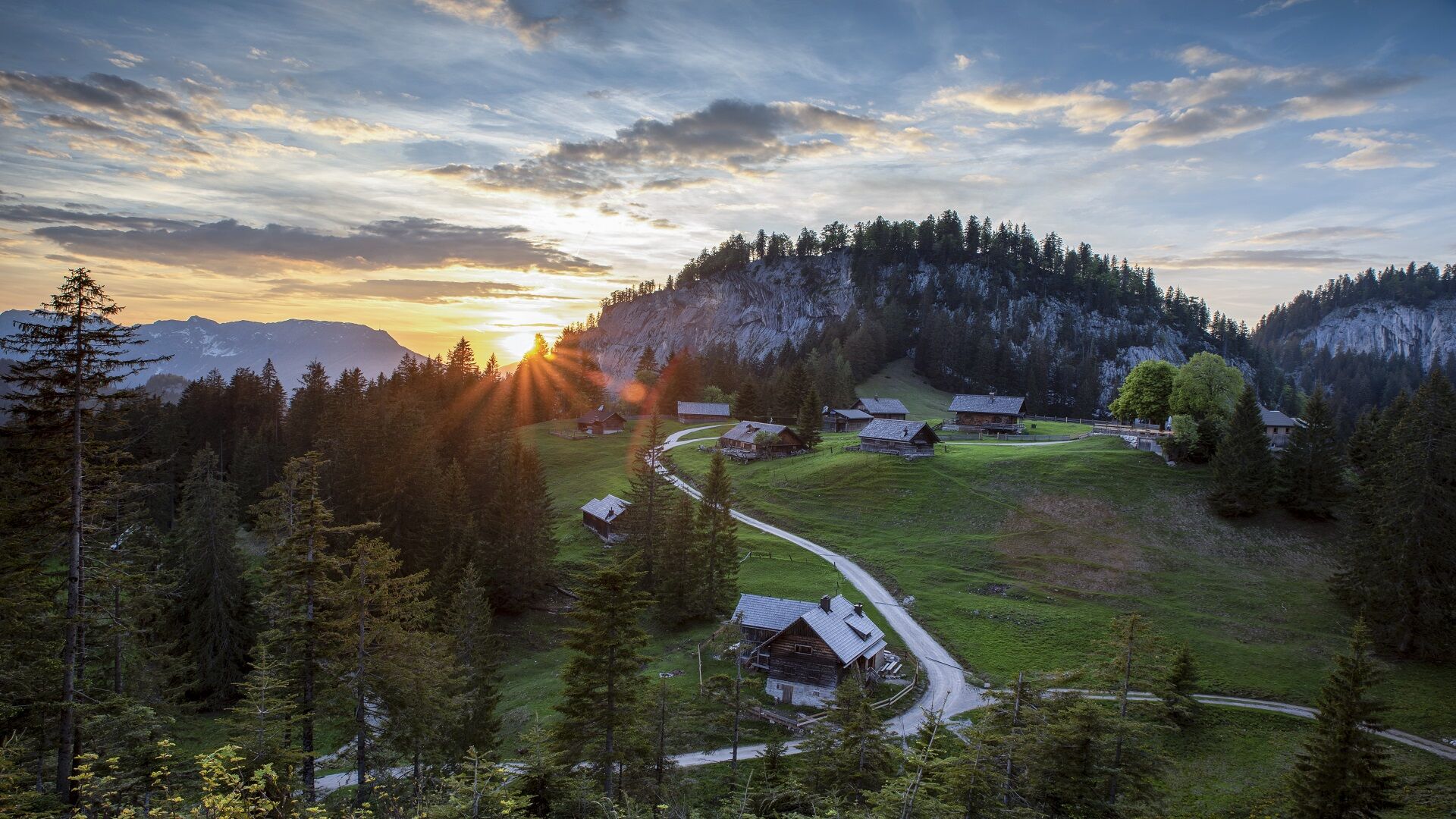 Below the former Predigstuhl Inn turn right into the forest and after about 50 m left on the forest road. After another approx. 200 m we have to turn right again, following the signs towards “Roßmoosalm”. The path now goes slightly up through the forest until we reach the “Roßmoosalm” after about 30 minutes. When crossing the lush meadows, we can already catch the first views of the Dachstein glacier and the surrounding mountain ranges.
