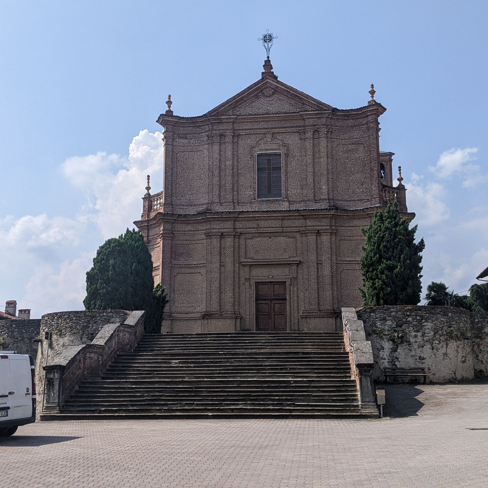 Arriving opposite the Church of Santa Maria Assunta turn left onto via Camillo Benso Conte di Cavour. Then leave the center of San Giorgio, continue straight on the provincial road to Montalenghe where you turn left into the small Don G. Arvat street. Upon reaching Sp 82 turn left and continue until reaching Villate: then turn right among the houses, at the first intersection (with votive pillar) turn left and again left. Then cross the provincial road, go up a few meters to the left and enter a small street, which shortly after you leave to the right for an unpaved road entering the woods after running alongside a garden. The unpaved road ends on another unpaved road running alongside the motorway: turn left, then cross the motorway on a footbridge. The small road ends near a junction: continue straight on SP 54 which enters Cuceglio. After a large shed turn right onto via Chioso and after a climb turn left onto via Alberito. Then keep right to take the provincial road to Vialfrè. Further on turn left onto provincial road 55 and reach Vialfrè, continue along the road crossing the village and reach San Martino. At the traffic light turn right and enter the church square. Then turn left, pass beside the town hall and reach via Arduino which crosses the entire center and leads back onto provincial road 56: follow it to Silva. Then keep right at a votive pillar and enter among the houses to emerge again onto the provincial road further ahead. Near Torre Canavese turn right onto via Breia, then into piazza San Defendente up to the Church of San Grato. Descend another hundred meters and turn left onto via Isabella then right to reach SP 41. Turn left and at the roundabout turn right onto strada Bairo. In the center of Bairo keep right to take via Castellamonte: proceed straight until emerging onto SP 222 where you turn left. Continue straight and enter the center of Castellamonte to turn left onto Largo Talentino, then piazza Martiri della Libertà and the starting point.