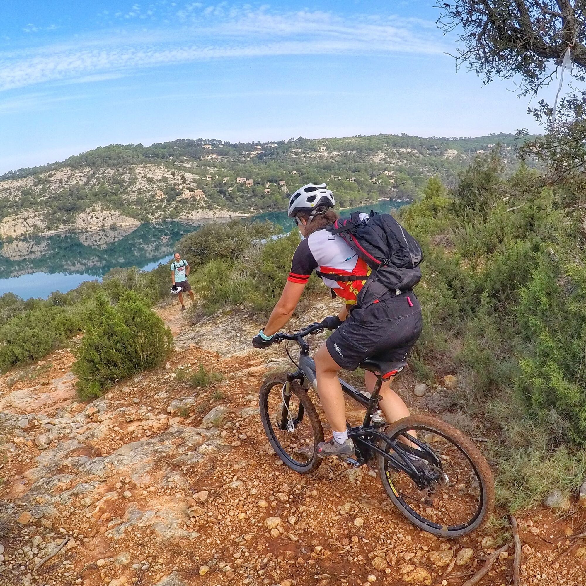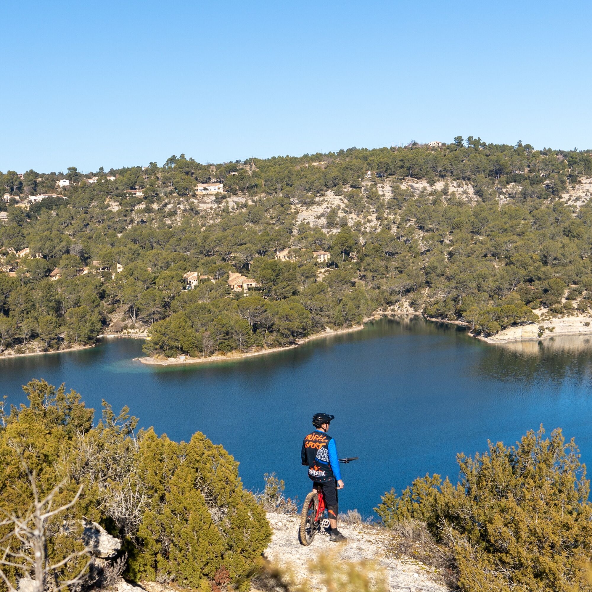 The first climb from Quinson is through carrying your bike. You quickly reach a plateau to get to the pretty village of Esparron-de-Verdon bordering the lake. Ideal spot for your lunch break, take time to admire the 13th-century castle and enjoy a swim. You continue on a more rideable route with short physical climbs to the village of Saint Martin-de-Brômes. Then, a climb leads you to a viewpoint over one of the 5 dams in the Verdon. Have fun on the last technical descent with stair sections that can be easily ridden. You arrive at Gréoux-Les-Bains.