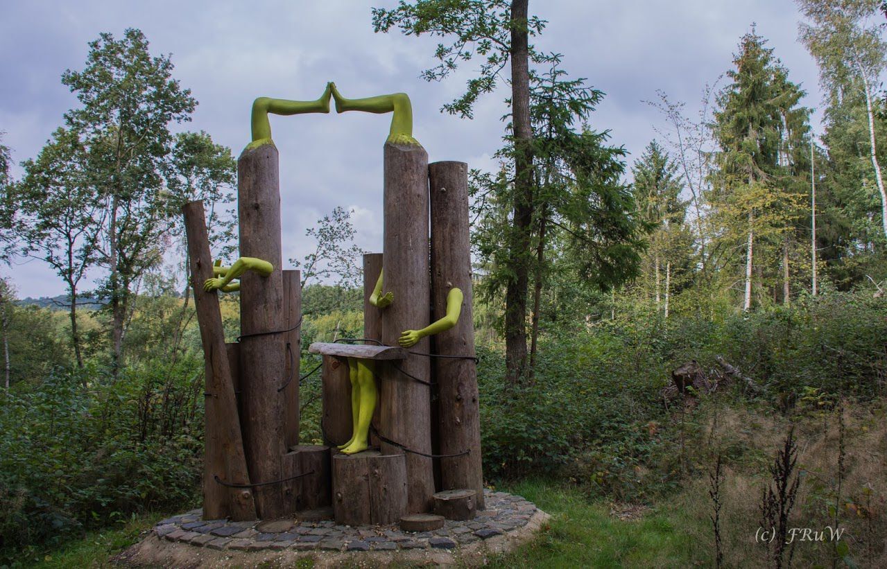 Our hike starts at the Reifenthal hiking car park, which is also very easily accessible via the Koblenz-Simmern bus line. Through a beautiful meadow valley, it goes up to the viewpoints "Fuchsbau" and "Eifelblick". Past Bickenbach with its gastronomy in the middle of the village, it goes downhill, past the forest spirit, until we reach the Ackersberg viewpoint with the distinctive cross. After enjoying the view, it continues to the Baybach, which will be our companion for the next three kilometers. We pass the Sonntags-, Schulheiser-, and Petchesmühle mills before reaching the "Rutsch," a wonderful resting place at the mouth of the Eichelsbach into the Baybach. The next rest does not take long to come, as just around the corner is the first brewery in the Rhein-Hunsrück district, the Striedersmühle. From there, it goes strengthened up the slope. Past Emmelshausen, it continues over the Heilbrünnchen to Schwall. There, the path leads us along various modern artworks back to Reifenthal.