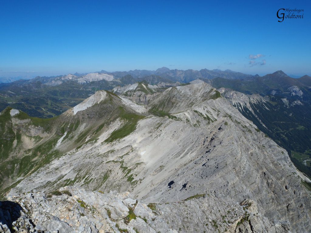 Schwierigkeit: Dies ist eine Gipfel Grat Wanderung meiste Zeit im Fels und teilweise auch ziemlich ausgesetzt. Ganz selten gibt es eine Seilversicherung, sehr oft aber Kletterein. Eine gewisse Menge an Erfahrung sollte man dabei mitbringen, andernfalls einfach am Zentralalpenweg weiter unten bleiben und die Gipfel von unten ansehen. (Besser als oben gehen und sich dann die Kartoffel von unten ansehen :)