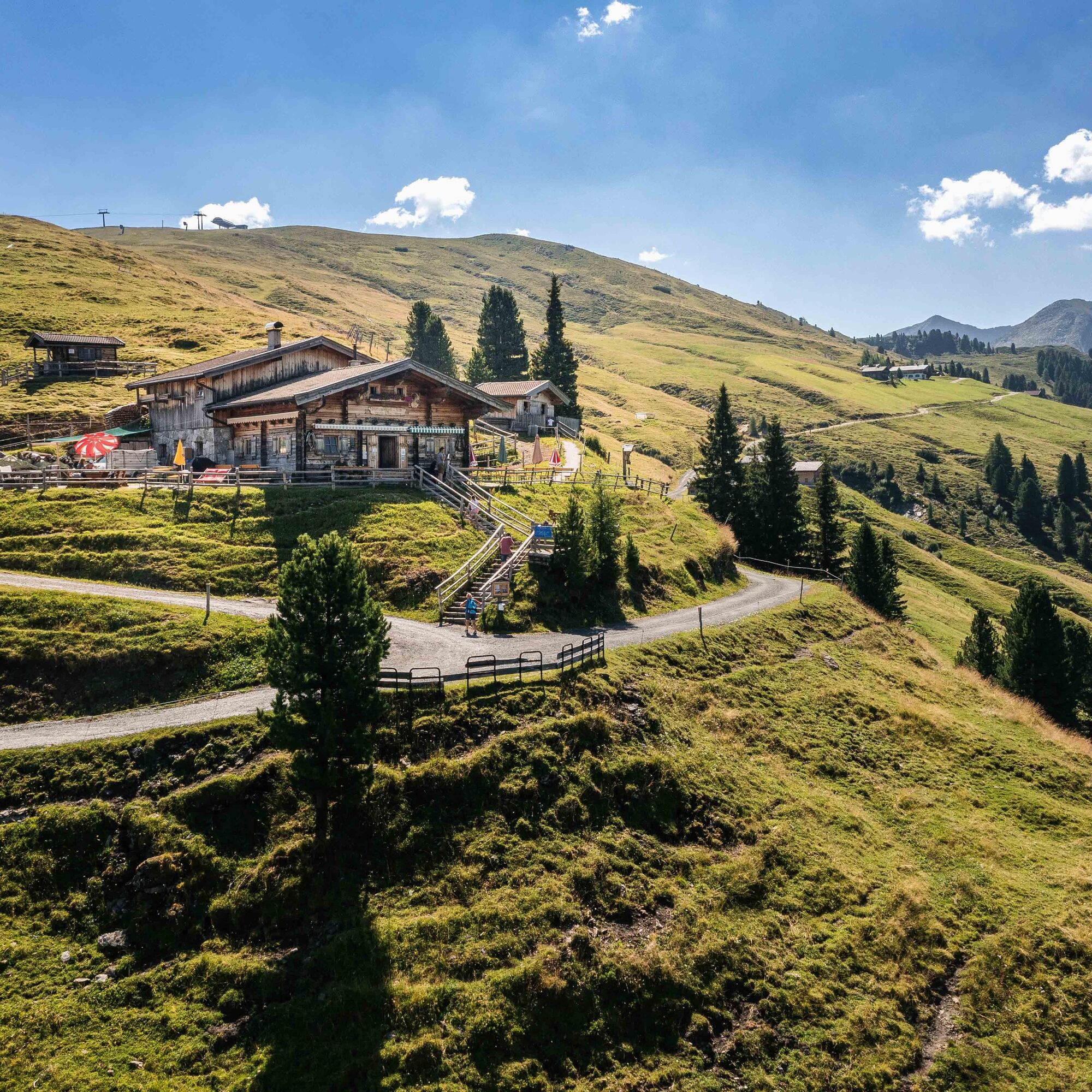 From Krimml, the first section leads via the Gerlos Alpine Road. Once at the pass height, turn left towards Hochkrimml. Here you will be rewarded with a wonderful mountain panorama. On the only slightly ascending path between OT Filzstein and OT Silberleiten, you can gather some strength again before the last section to the quaint Gletscherblickalm leads upwards again.