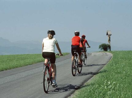 Start des Radausfluges im Ortszentrum, Fahrt Richtung Acharting, nun harte, kurvenreiche Straße durch die Ortschaft Würzenberg am Antheringer Haunsberg empor, überqueren des Maunzgrabens (hier soll laut...