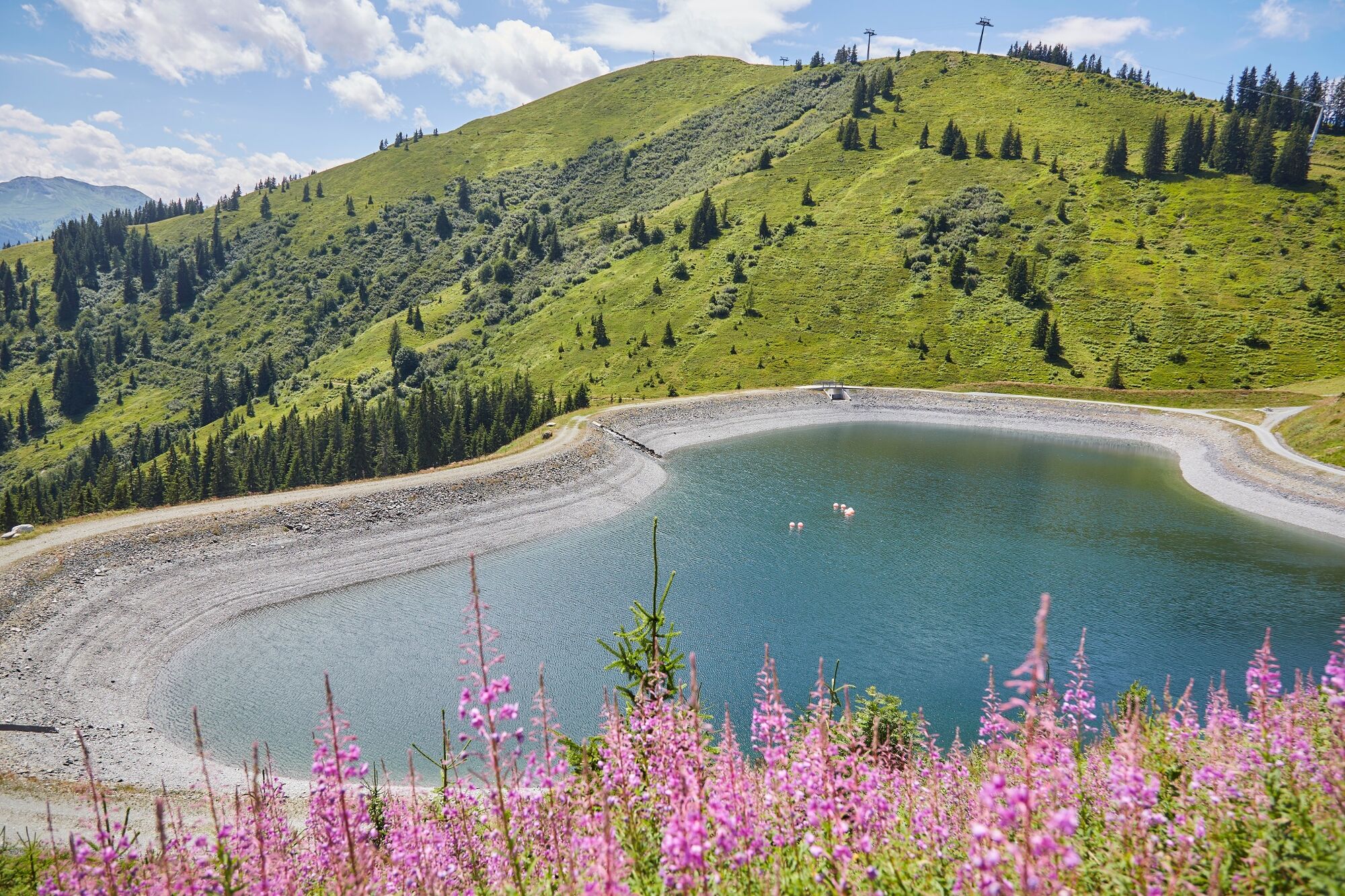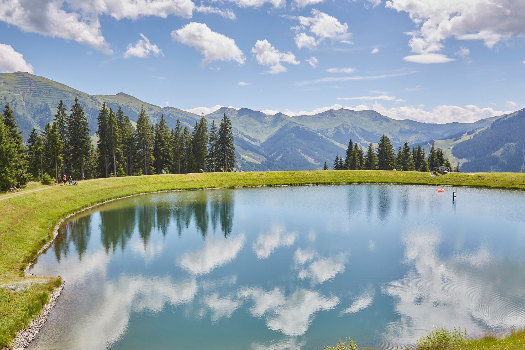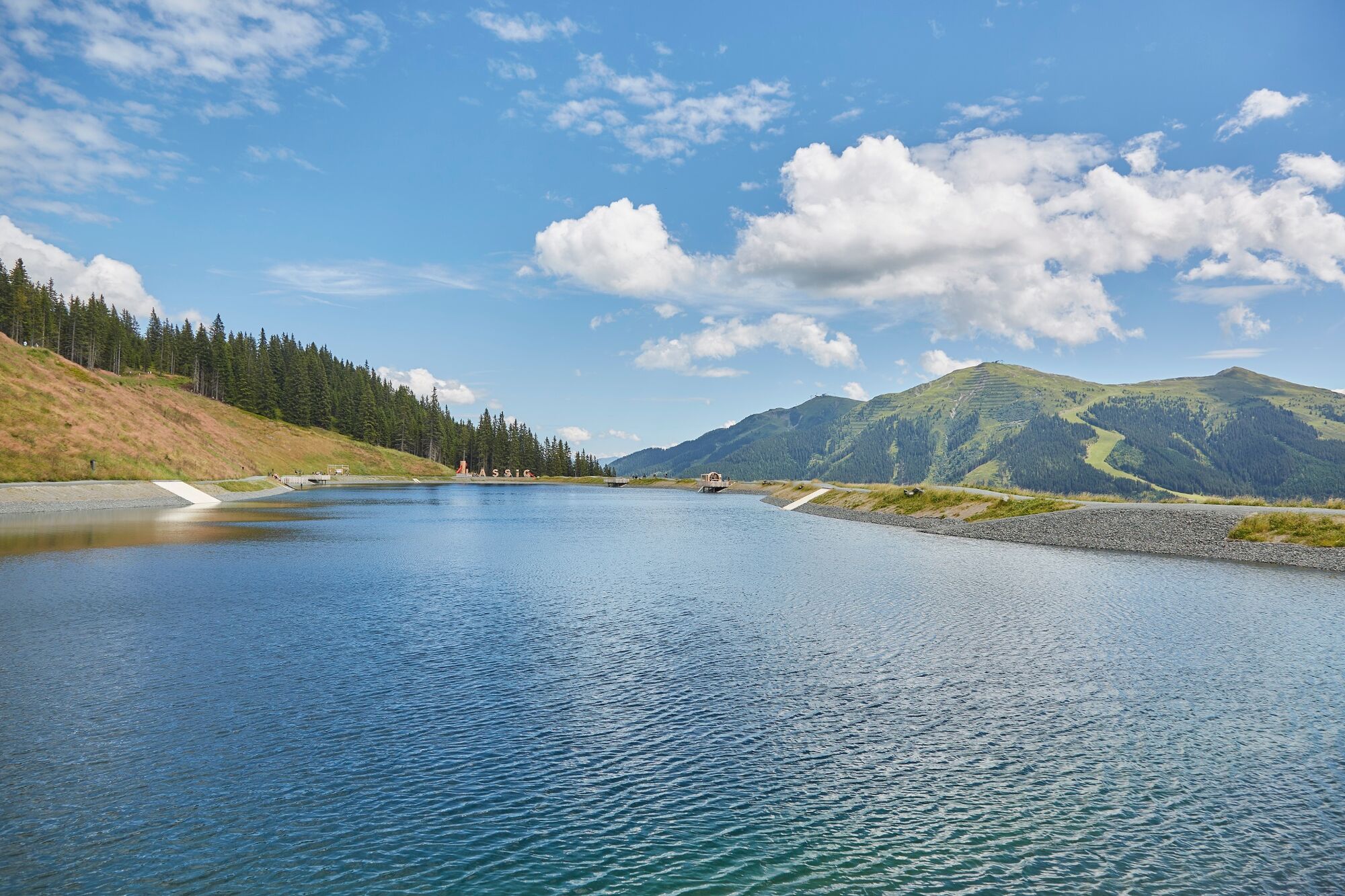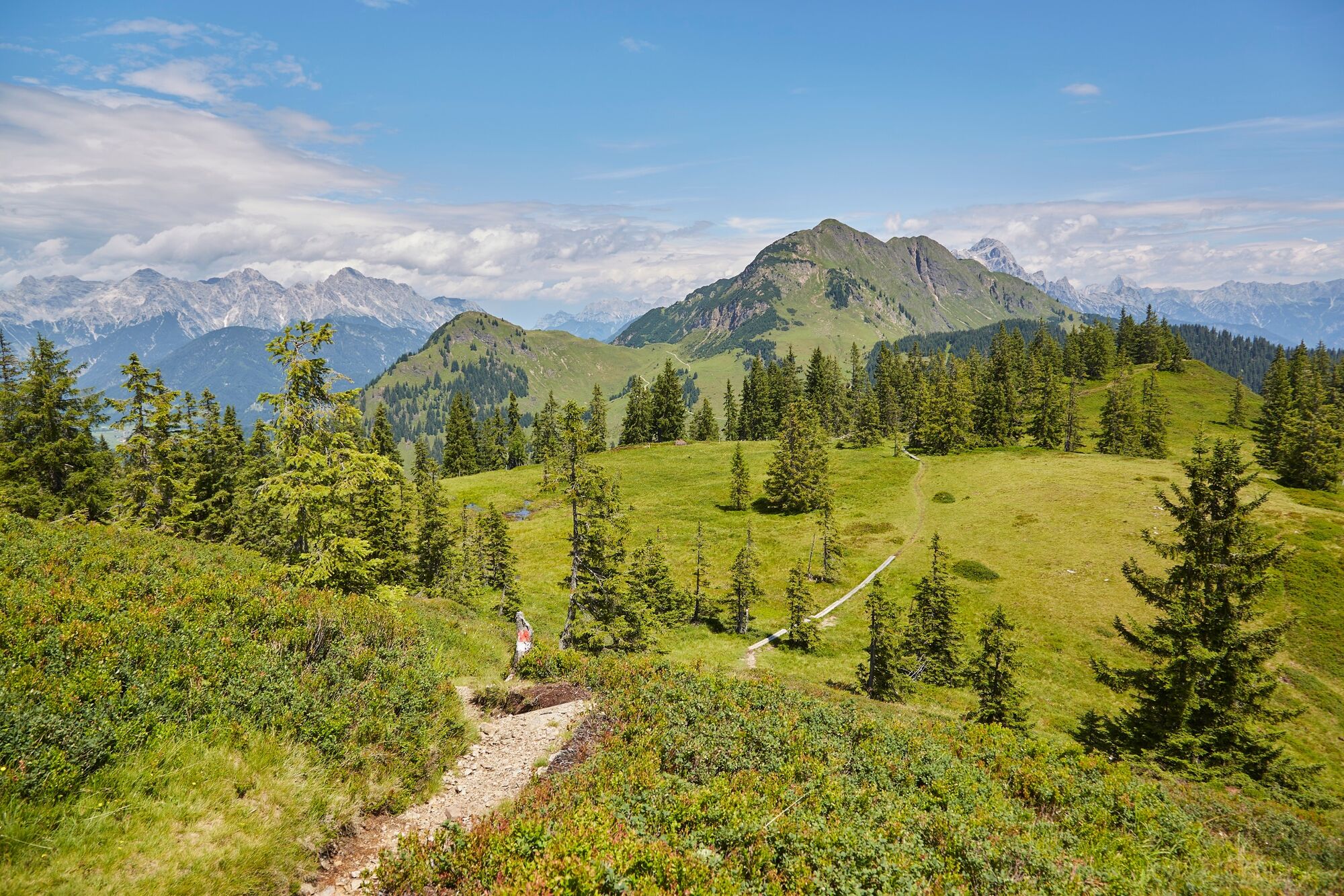 The tour starts straight along the Spielbergbach stream to the Spielberghaus. Now the tour branches off in a westerly direction to the Bernkogel. Across the slopes where skiers normally roar down in winter, you reach a number of farmed alpine pastures. At the Reiteralm, it pays off to explore the various themed trails such as the herb trail, the alpine flower trail or the barefoot trail. Furthermore, above the mountain pasture in a hundred-year-old forest, there is a forest wellness trail with yoga platforms, forest hammocks and an outdoor library.