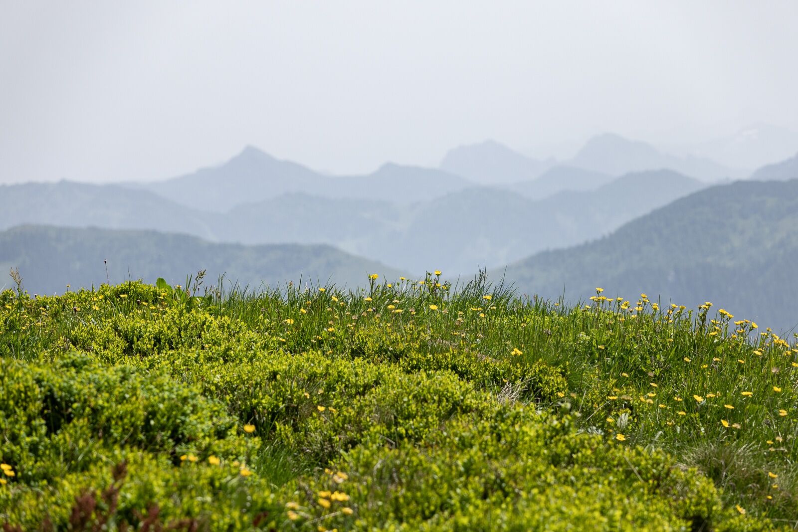 Behind the Kleinarler Hütte, take the hiking trail (no. 87) and follow it first onto the ridge (=left) to the Drei Lacken and finally to the Penkkopf (=right). Return on the same trail or alternatively on trail no. 87 to the saddle, turn right there and follow trail no. 81 to the Kurzeggalm. You will reach the Kleinarler Hütte again via the shared trail. Walking time: Approx. 45 minutes each way (if you return from the Penkkopf) and you cover around 230 vertical meters.