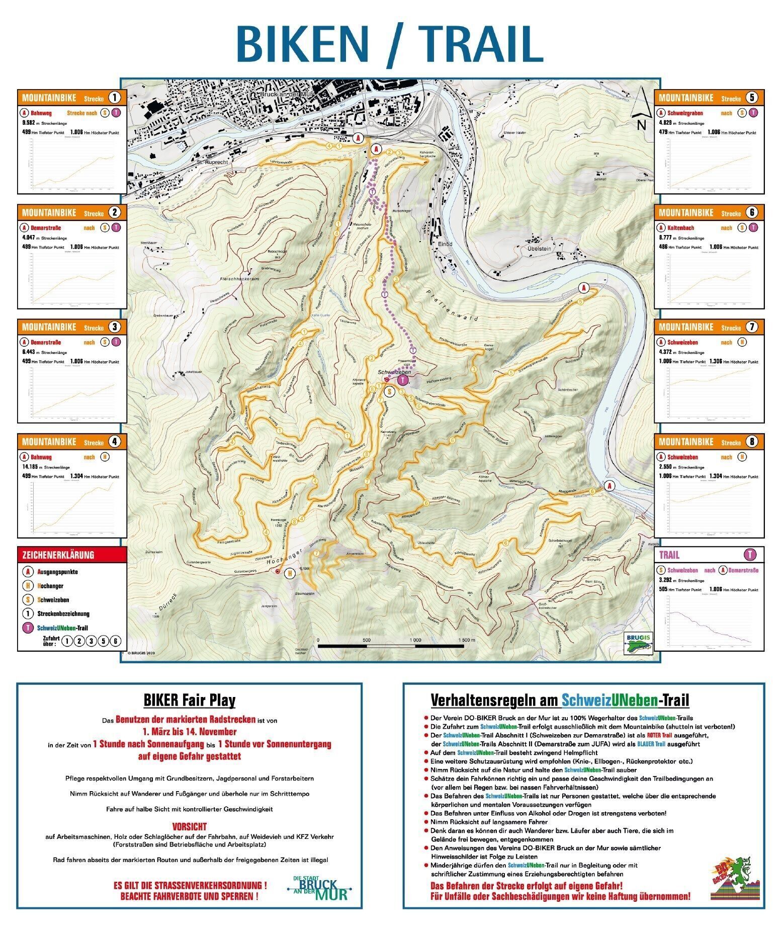 Das Benutzen der markierten Radstrecken ist von 01. März bis 14. November in der Zeit von 1 Stunde nach Sonnenaufgang bis 1 Stunde vor Sonnenuntergang auf eigene Gefahr gestattet.