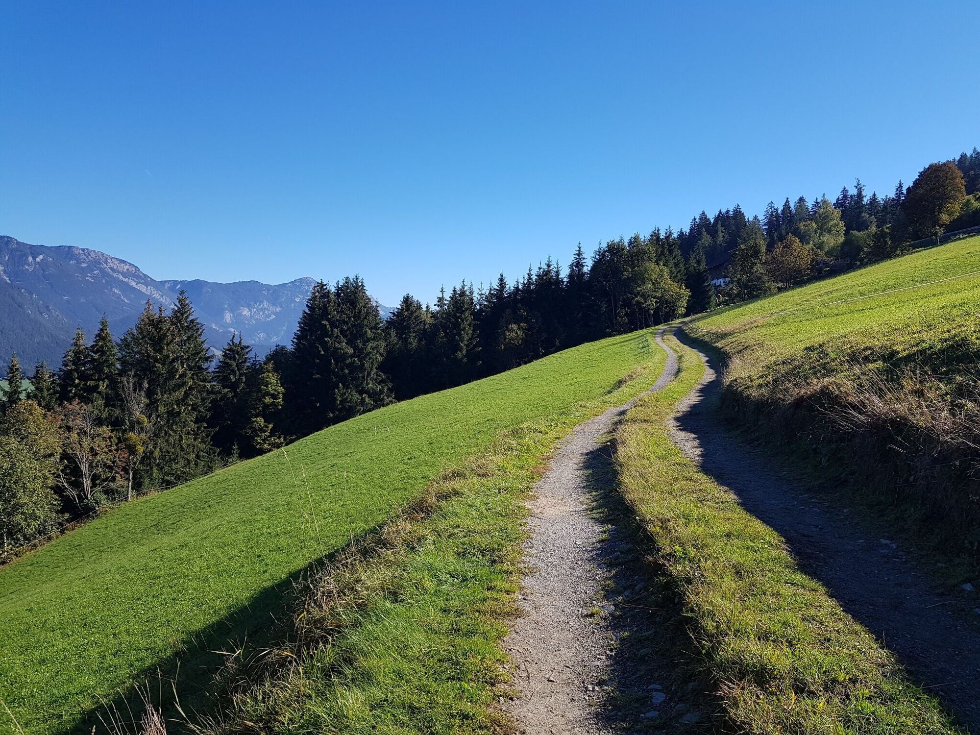 Vom Wanderportal am Planai-Stadion folgst Du kurz der Coburgstraße Richtung Osten und zweigst nach den Appartements "Zur Barbara" rechts in den Trenkenbachweg ab. Am Ende der Straße folgst Du dann der Beschilderung Nr. 50. Durch den Wald geht es bergauf zum Bauernhof vlg. Spreizenberger. Richtung Südosten wanderst Du weiter stetig bergauf, abwechselnd durch Waldstücke und über Bergwiesen. Beim vlg. "Rinderbichler" querst Du die Planaistraße und folgst dem Weg weiter über schöne Bergwiesen vorbei am Hotel Schröckerhof. Oberhalb des Hotels querst Du den Brandweg und erreichst kurz darauf den Wieslechnerhof. Nun sind es noch ca. 15 bis 20 Minuten bis zur Wieslechalm. Hier hast Du ca. die Hälfte der Strecke geschafft und Dir eine Rast auf der Terrasse redlich verdient. Genieße die Aussicht auf das Ramsauer Plateau und Schladming.