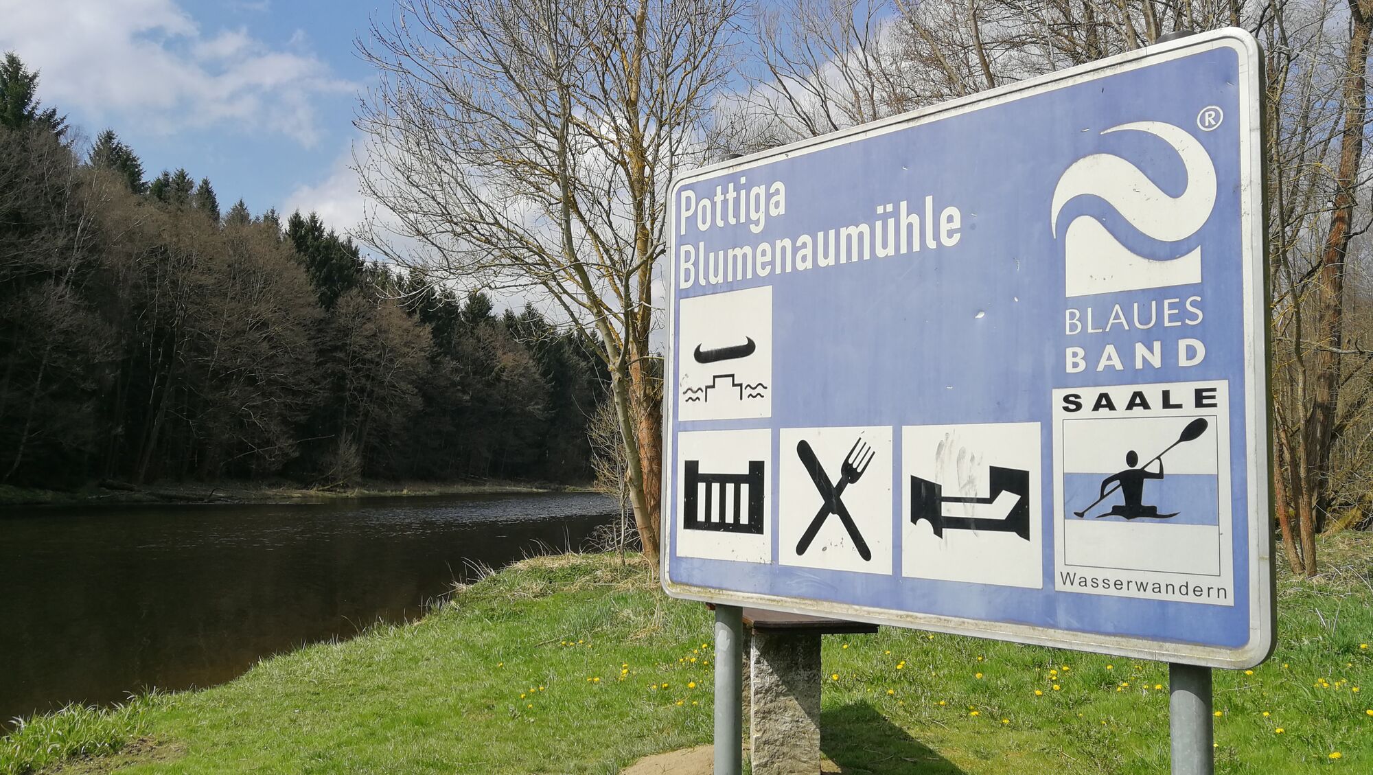 ►►► Wir laufen über die Brücke. Da die Saale hier noch nicht angestaut ist, sind kleine Überschwemmungen nicht selten. An der Einmündung auf die Hauptstraße erkennen wir wieder die Markierung des Saale-Orla-Weges. Wir müssen nun die Uferstraße benutzen, da hier keine Feld- oder Waldwege vorhanden sind. Auf der kurvenreichen, wenig befahrenen Straße (LKW-Verbot) gelangen wir wieder zu unserem Ausgangspunkt.