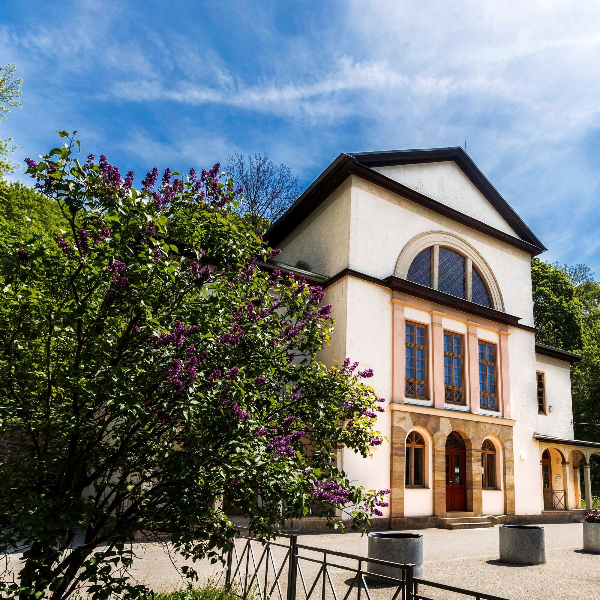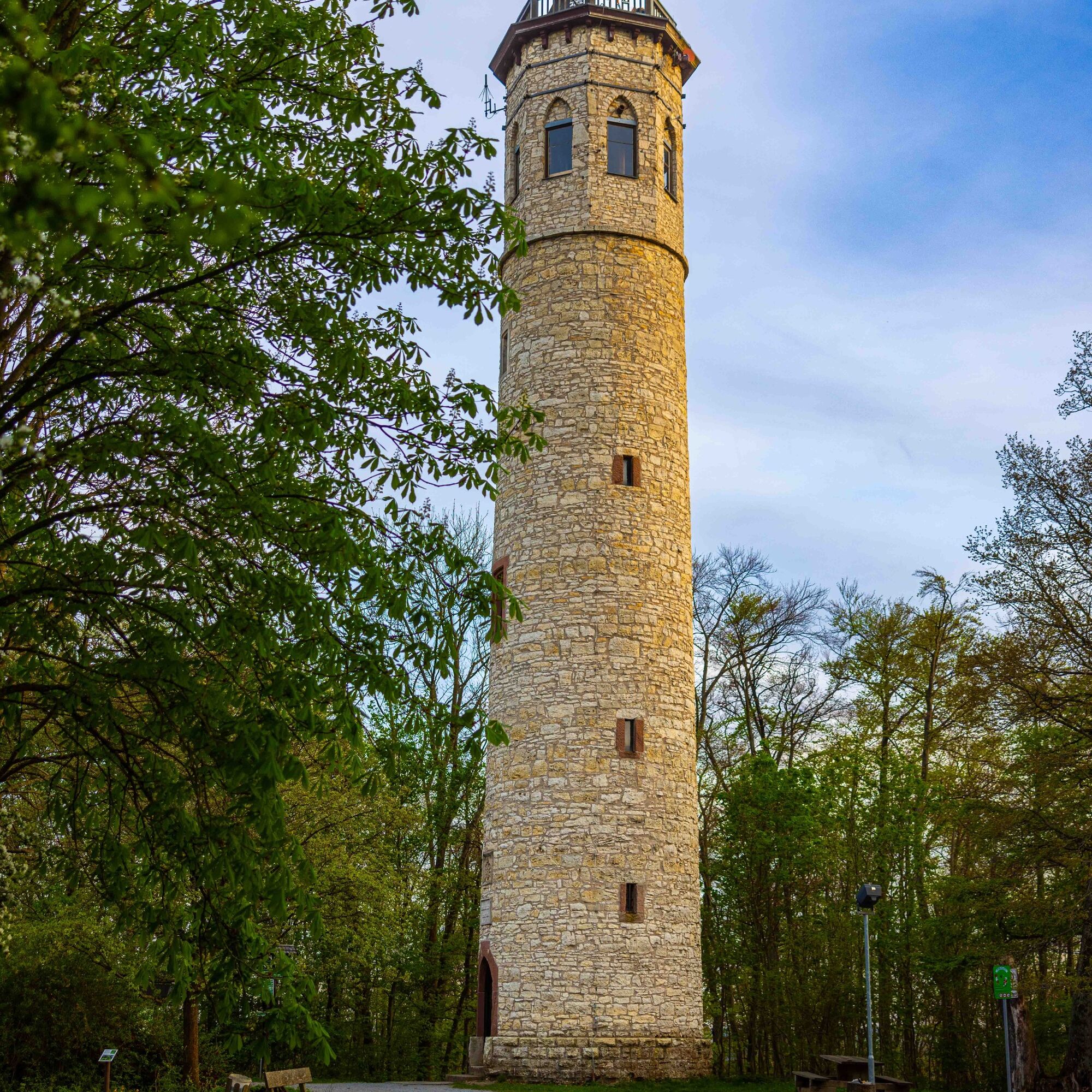 After starting at the Goethe Fountain, we walk along the Goetheallee through the spa park. At the end of the Goetheallee, we turn right and walk parallel to Hetschburger Street. At the end of the path, we cross Park Street and use the paved path to the left of the Coudray House to the forest. Walk up the staircase and follow the path to the street Am Adelsberg. We cross the street and keep slightly left until we meet the hiking trail parallel to the road to Hetschburg. Here runs the Ludwig-Geist-Path on the Thuringian Three Towers Trail until above Hetschburg. Here we turn right and the path now goes uphill. At the summit, we reach Adelsberg with the Paulinen Tower and the Paulinen Tower lodge. Behind the Paulinen Tower lodge we turn left onto the driveway and after about 300 m turn right and follow the path downhill. We cross the forest road to the Paulinen Tower and follow the path until we meet a meadow at the end of the forest. Here we turn right and follow the path to the Paulinenhütte. From here, the path goes downhill again to the Coudray House. Using the way parallel to Hetschburger Street and the Goetheallee we reach the destination.