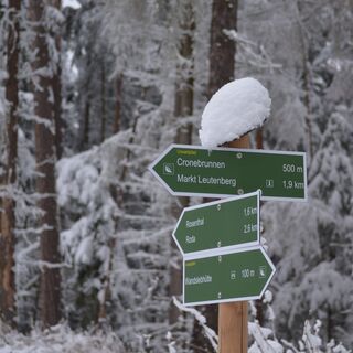 Start the hike at the stele in front of the parking lot at Leutenberg train station.
