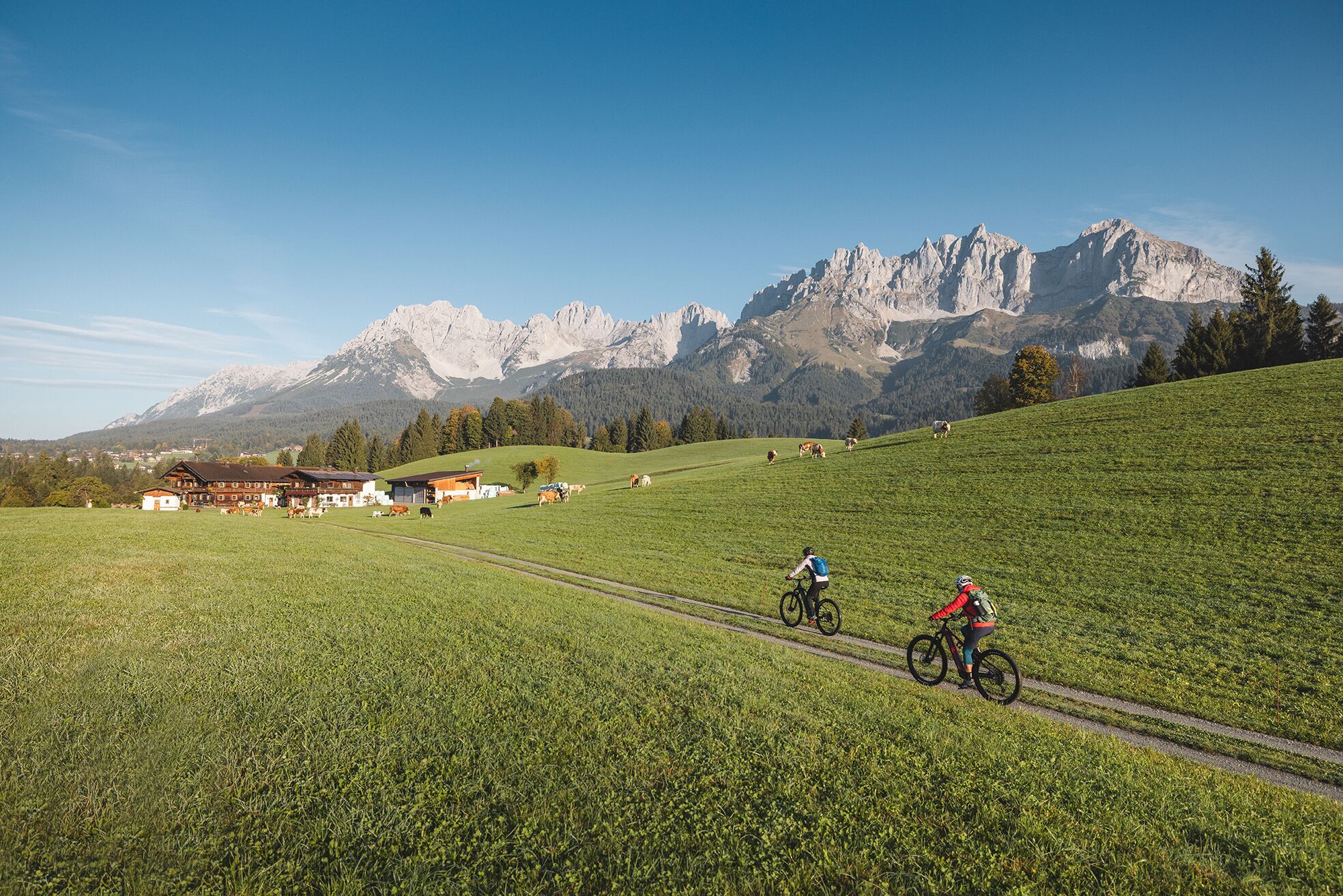 Eine abwechslungsreiche Radrunde mit vielen interessanten Sehenswürdigkeiten, die zu verschiedenen Zwischenstopps einladen. Starten Sie in einem der vier Kaiserorte und radeln Sie über den Eiberg nach Kufstein. Weiter über Ebbs und vorbei an Niederndorf fahren Sie bis zum Walchsee, der zu einer Rast einlädt. Über Kössen radeln Sie entlang der Großache vorbei an Erpfendorf und Kirchdorf nach St. Johann in Tirol. Vorbei an Oberndorf geht es über den Rerobichl wieder retour an die Südseite des Wilden Kaisers. Video ansehen.