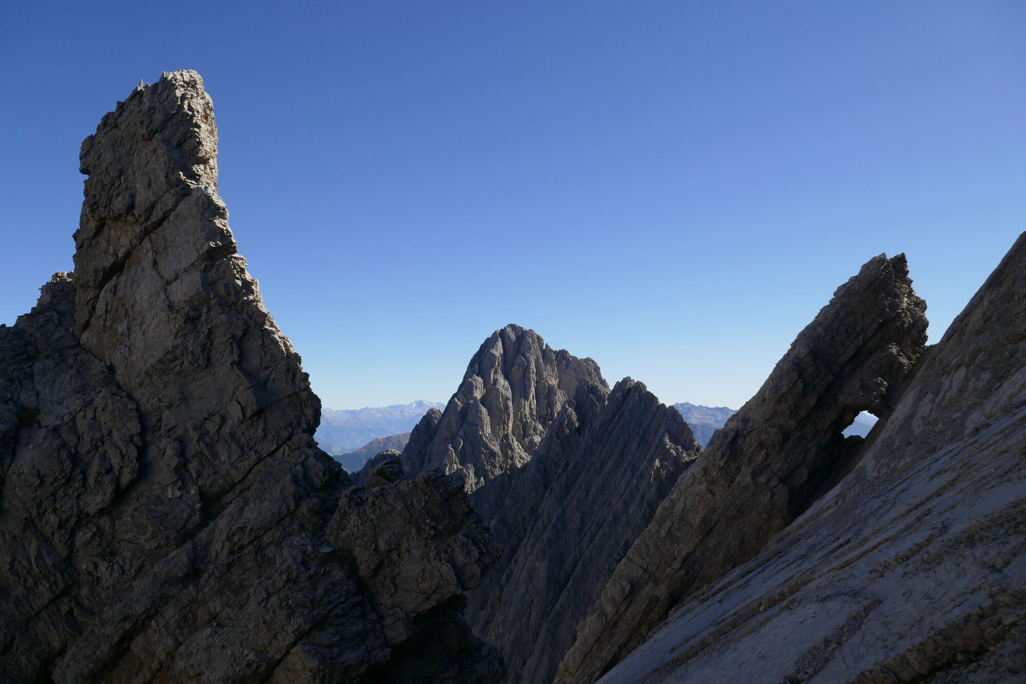 die Tour nur bei sehr stabilem Wetter durchführen, da ein Notabstieg kaum wo möglich ist