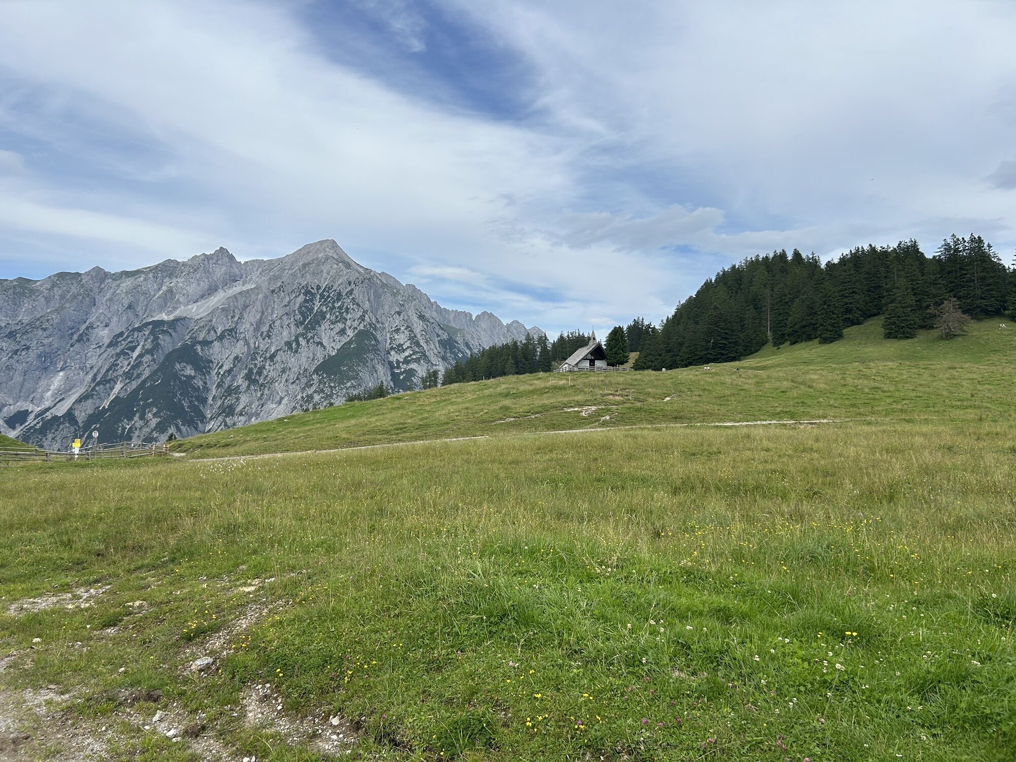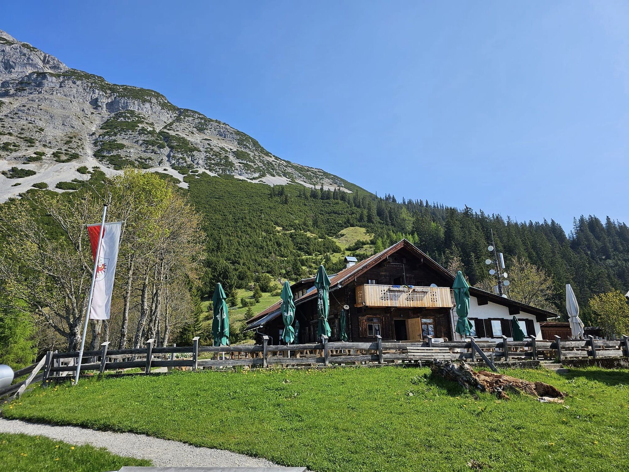 In Gnadenwald, the day starts with a brisk ascent to the Hinterhornalm. This south-facing ascent offers little shade in summer. Upon reaching the Hinterhornalm and the "Adlerblick" viewing platform, the route continues leisurely to the Walderalm. The panoramic view from the Walderalm, including the Karwendel panorama, the view of the Tuxer Alps, and the Inn Valley, can be fully enjoyed here.