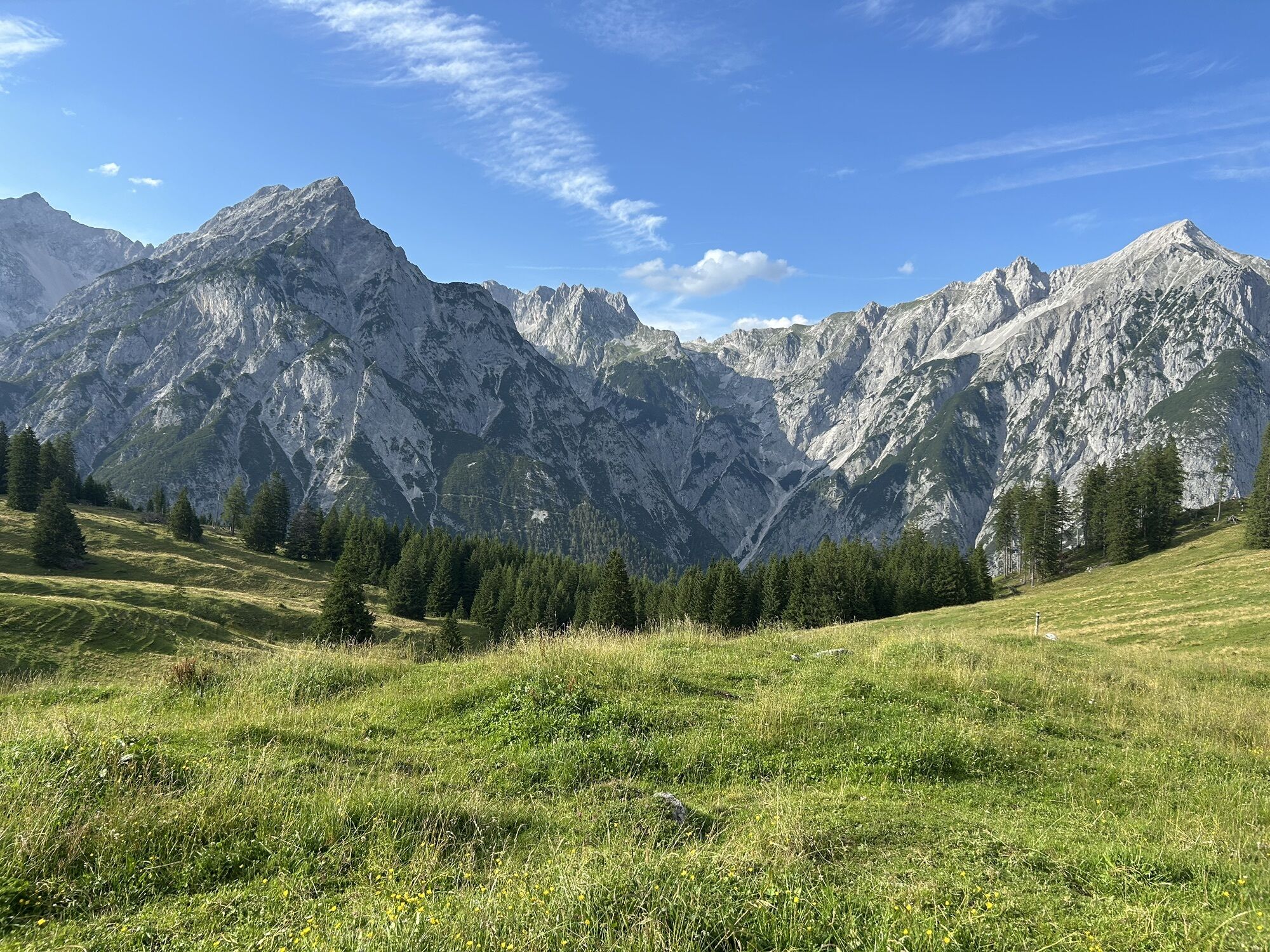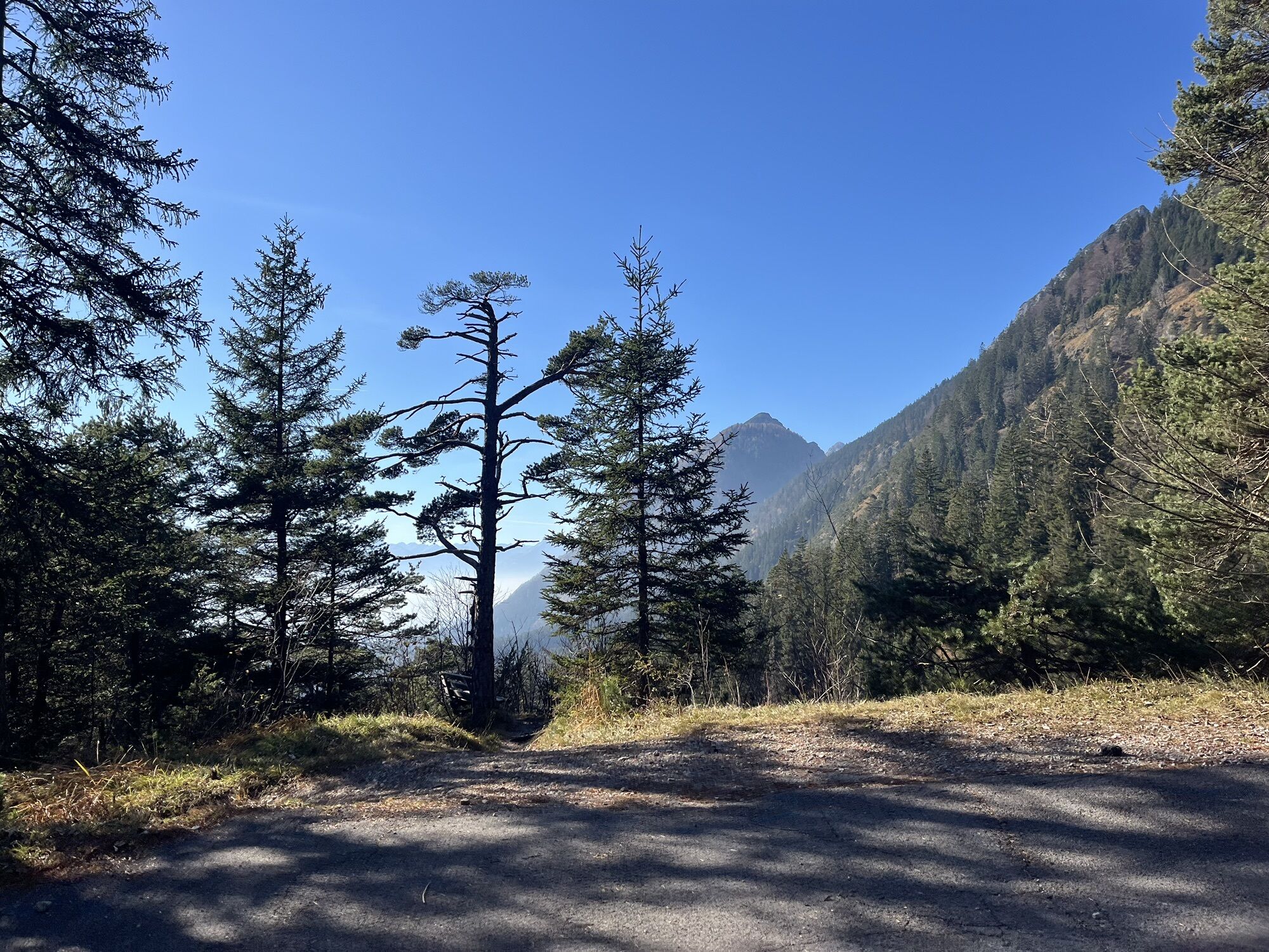 The path now leads 4 km along the forest road down to the Ganalm, where breathtaking views of the Karwendel and the Vomperloch await.