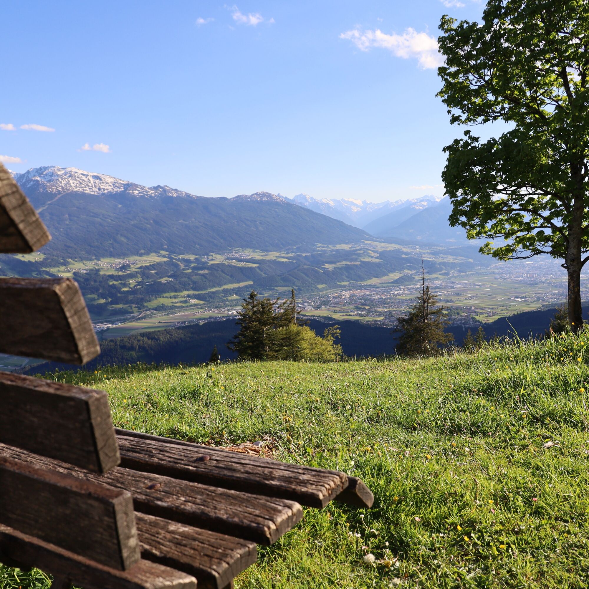 Once at the top, you can enjoy the magnificent views and 360-degree panorama of the Stubai Alps, Tuxer Alps, Karwendel mountains, and the Inn Valley from the Adlerblick viewing platform 1522. The Hinterhornalm invites you to rest and refresh.