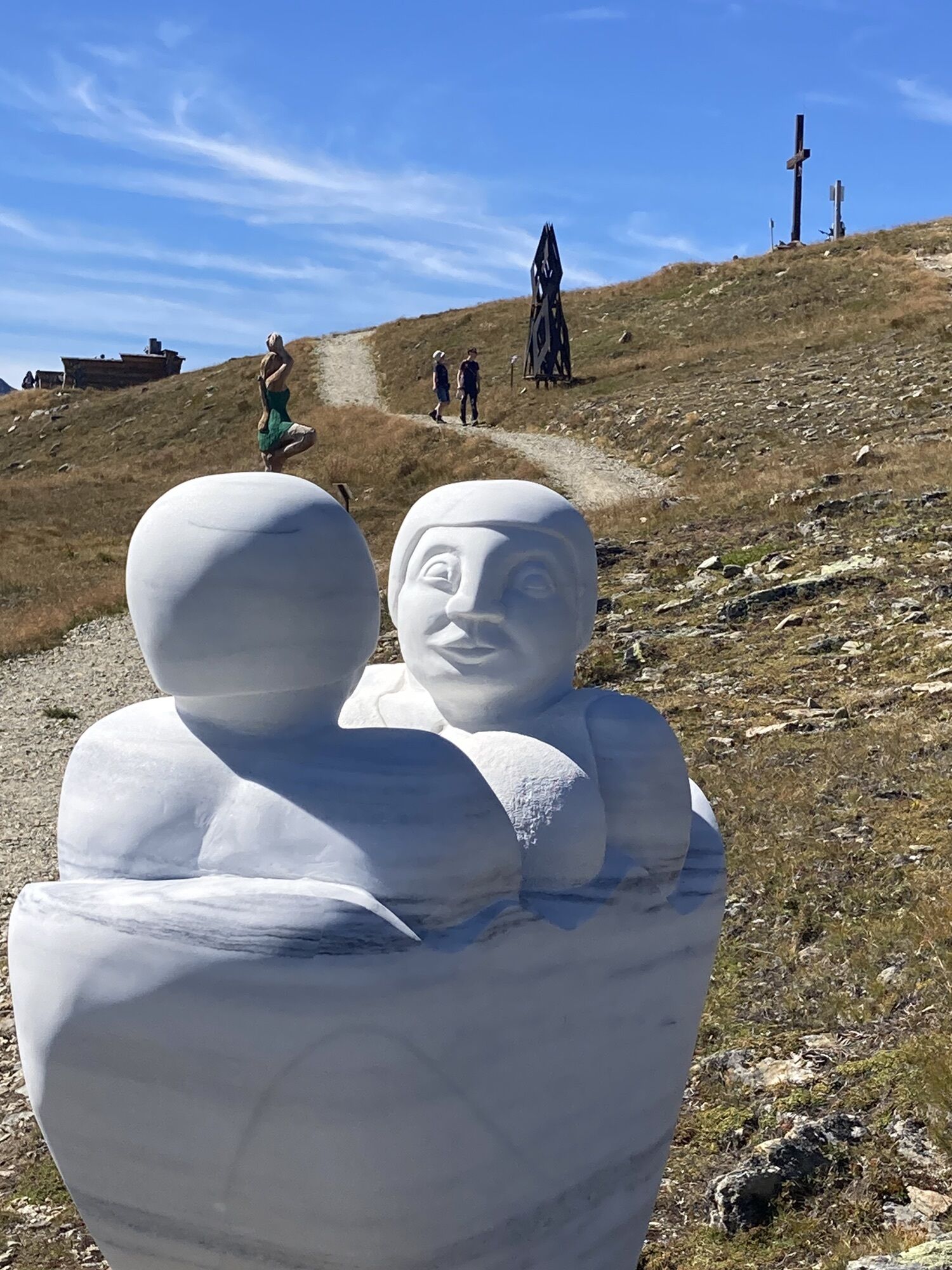 Bis Frommesalm leicht ansteigend, dann auf steilem Steig bis zu den Frommesböden und den Speicherteichen. Von dort der Piste steil dem Fahrweg entlang bis zum Kunstweg. Auf diesem letzten Steig wandert man an zahlreichen Skulpturen heimischer und internationaler Künstler vorbei bis zum Panoramarestaurant und der Bergstation Schönjoch.
