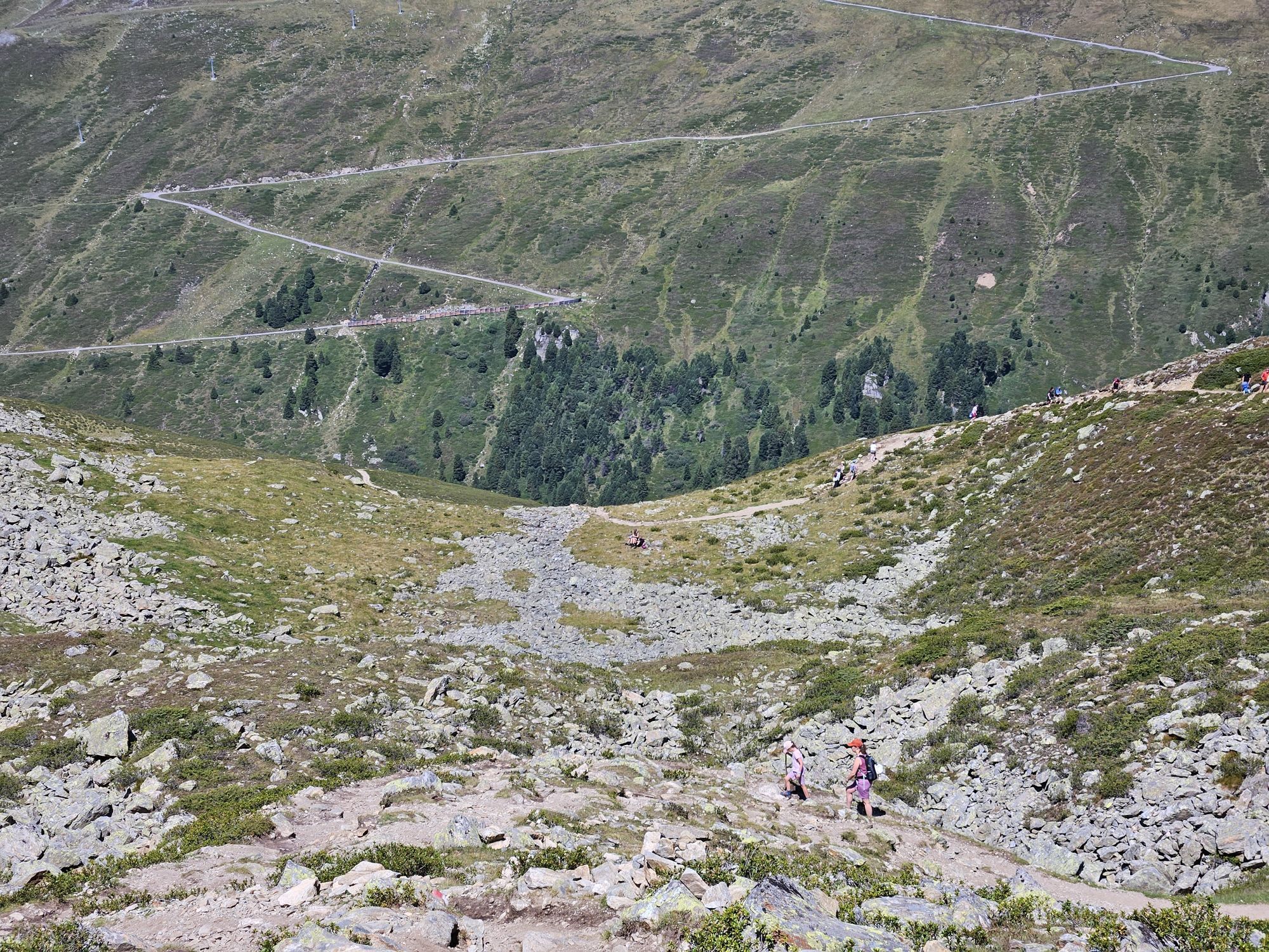 Für den Rückweg gibt es zwei Möglichkeiten: Entweder folgt man dem asphaltierten Weg, der vorbei am Graf-Ferdinand-Haus gemächlich zurück nach Kühtai führt, oder man wählt den gut markierten und beschilderten Steig, der über Almwiesen und durch felsige Abschnitte direkt nach Kühtai hinabführt.