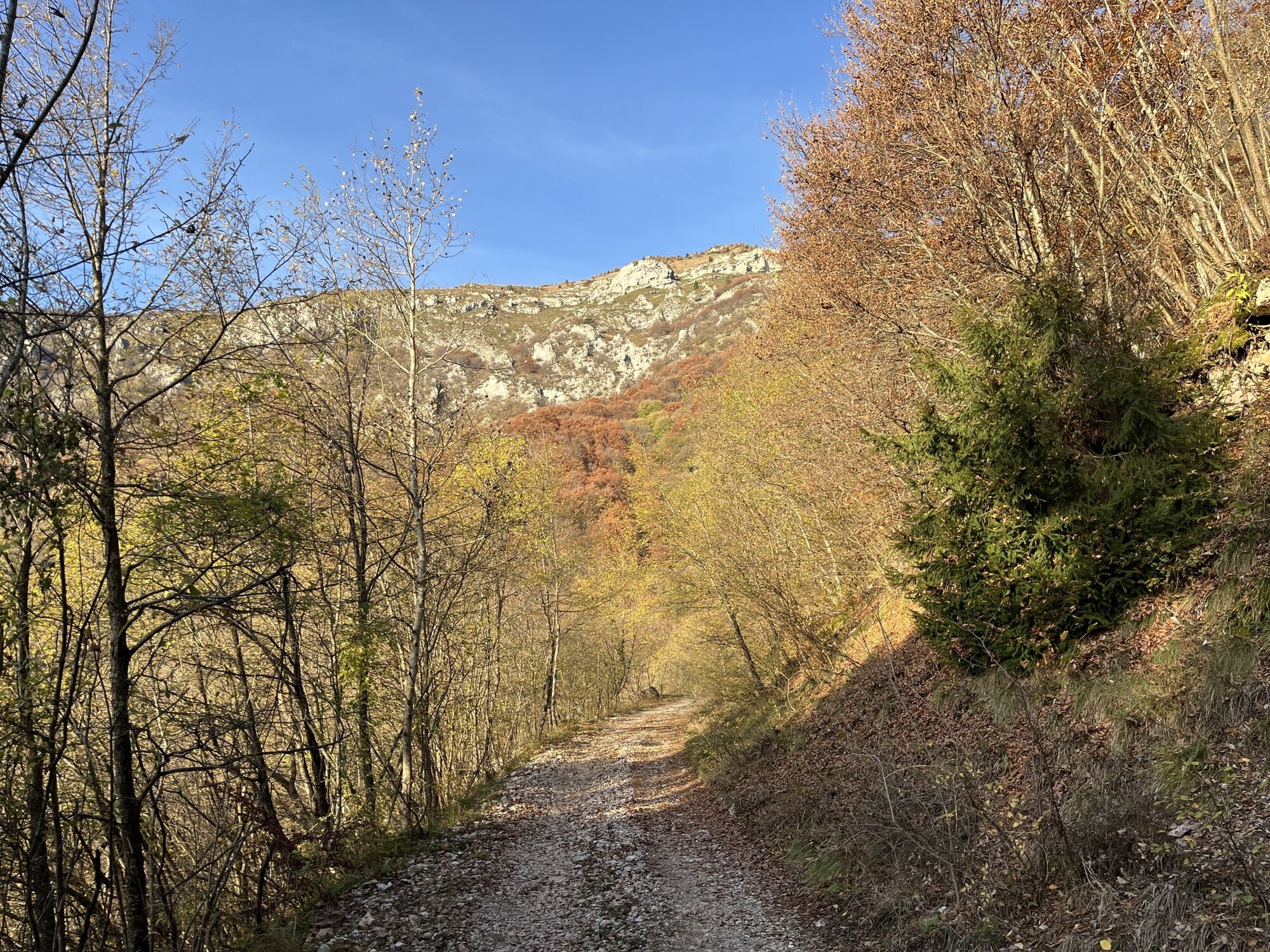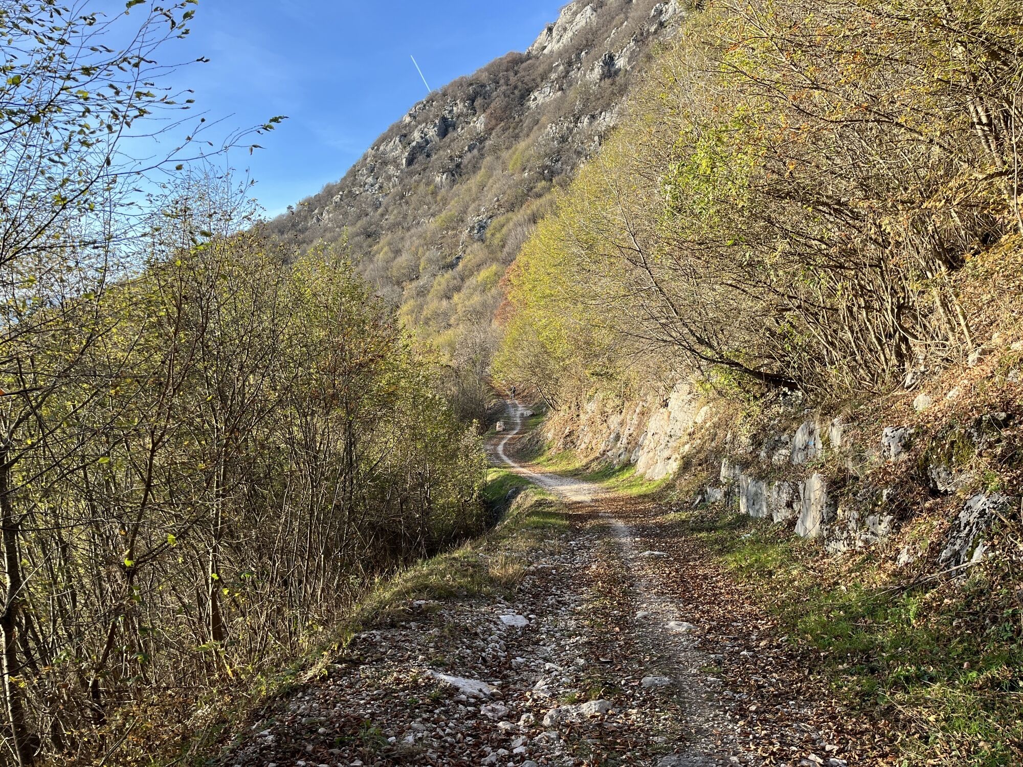 Once we reach Pianaura, we reach a fork and turn right to continue the climb towards Troiana, where the asphalt gives way to a dirt road, and Carobbi, a nice spot surrounded by beautiful chestnut groves. From Carobbi the forest road continues uphill in the direction of the Passo Due Sassi. Here it's definitely worth making a stop to admire the view over Lake Garda from one of two large rocks.