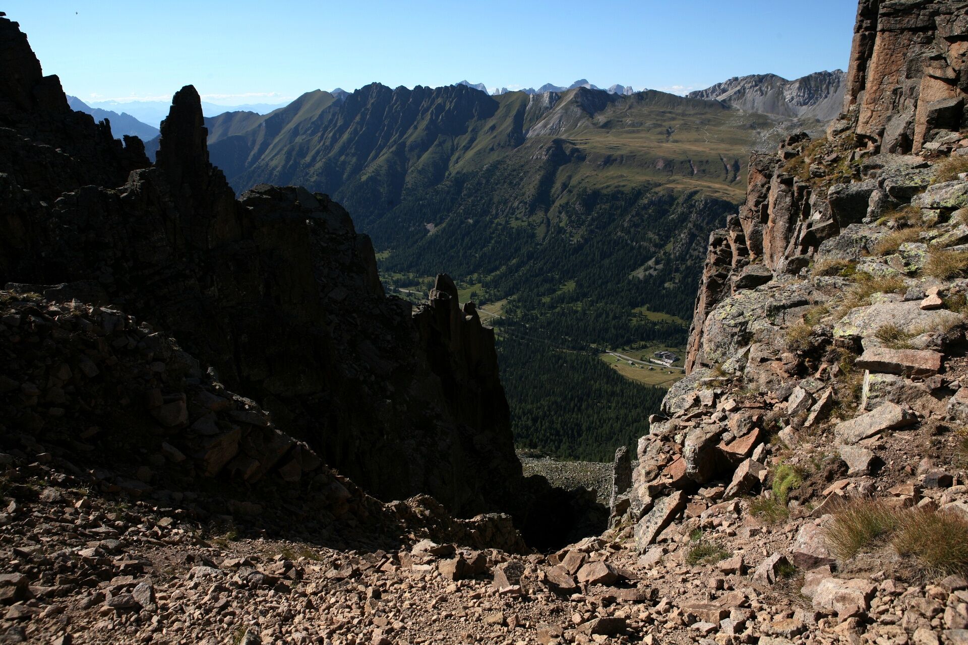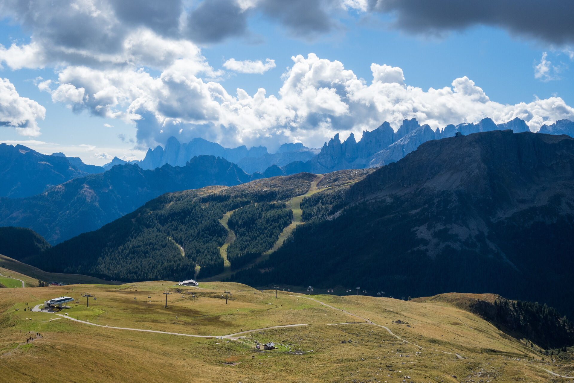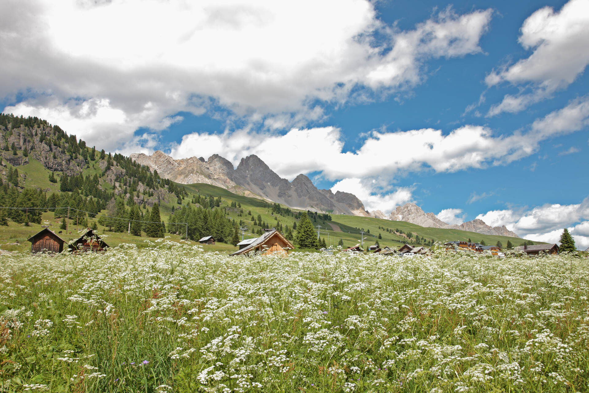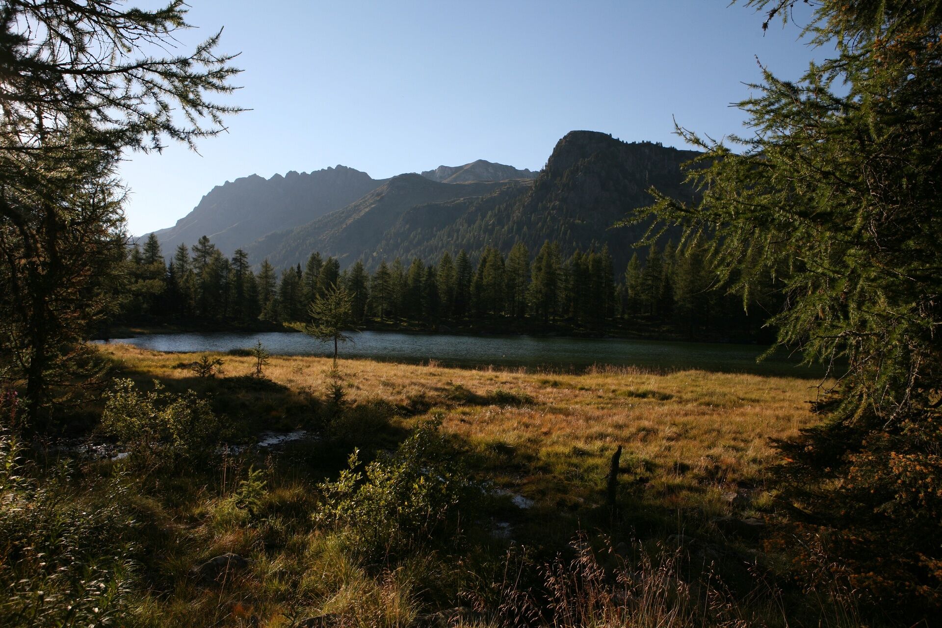 From Passo San Pellegrino, take the cable car to reach the Col Margherita. From the top station of the lift, descend along the dirt road that retraces the ski slope (trail no. 695). Then reach the Forcella di Pradazzo, where trail no. 658 from Passo Valles also converges. Now follow trail no. 695 which descends, through pastures and rocks, towards the artificial Cavia lake. Pass below the basin, moving to the opposite shore. Climb back up the rocky slope, with some ups and downs, arriving at Col Caviette, from where you rejoin trail no. 658. Follow it and shortly reach the Pale del Cargol balcony. Bypass the porphyric promontory towards the south, cross a rocky basin and finally the ski slope descending from Col Margherita. The trail now heads towards the pass. Through small clearings, dense rhododendron bushes and a sparse forest of Swiss stone pines and larches, you reach the cable car lower station.